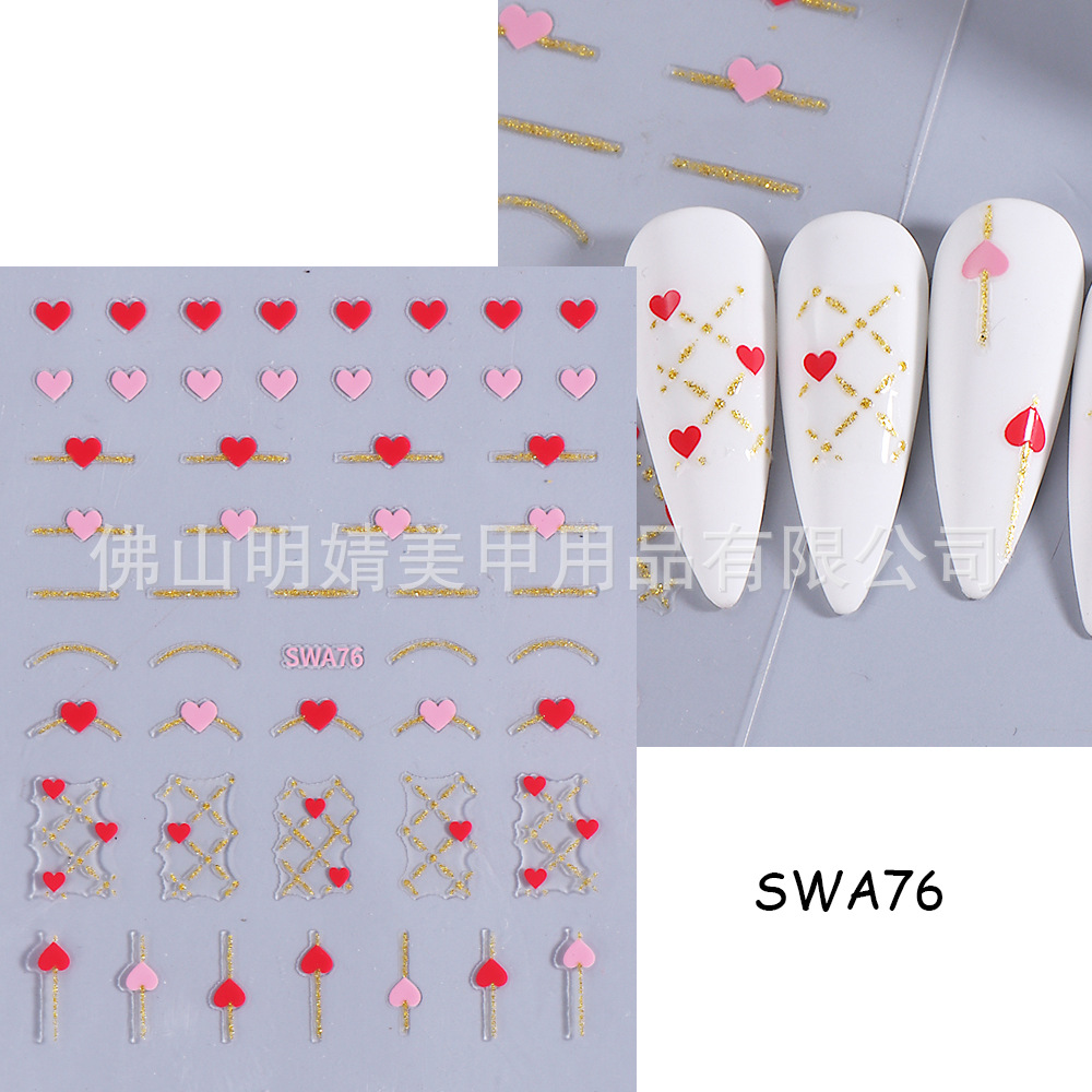 국경 간 뜨거운 판매 새로운 스티커 발렌타인 데이 러브 인 스타일 간단한 인터넷 유명 프랑스 스타일 라인 러브 네일 아트 스티커