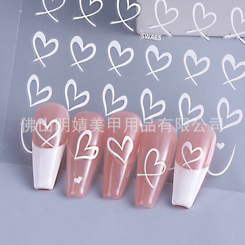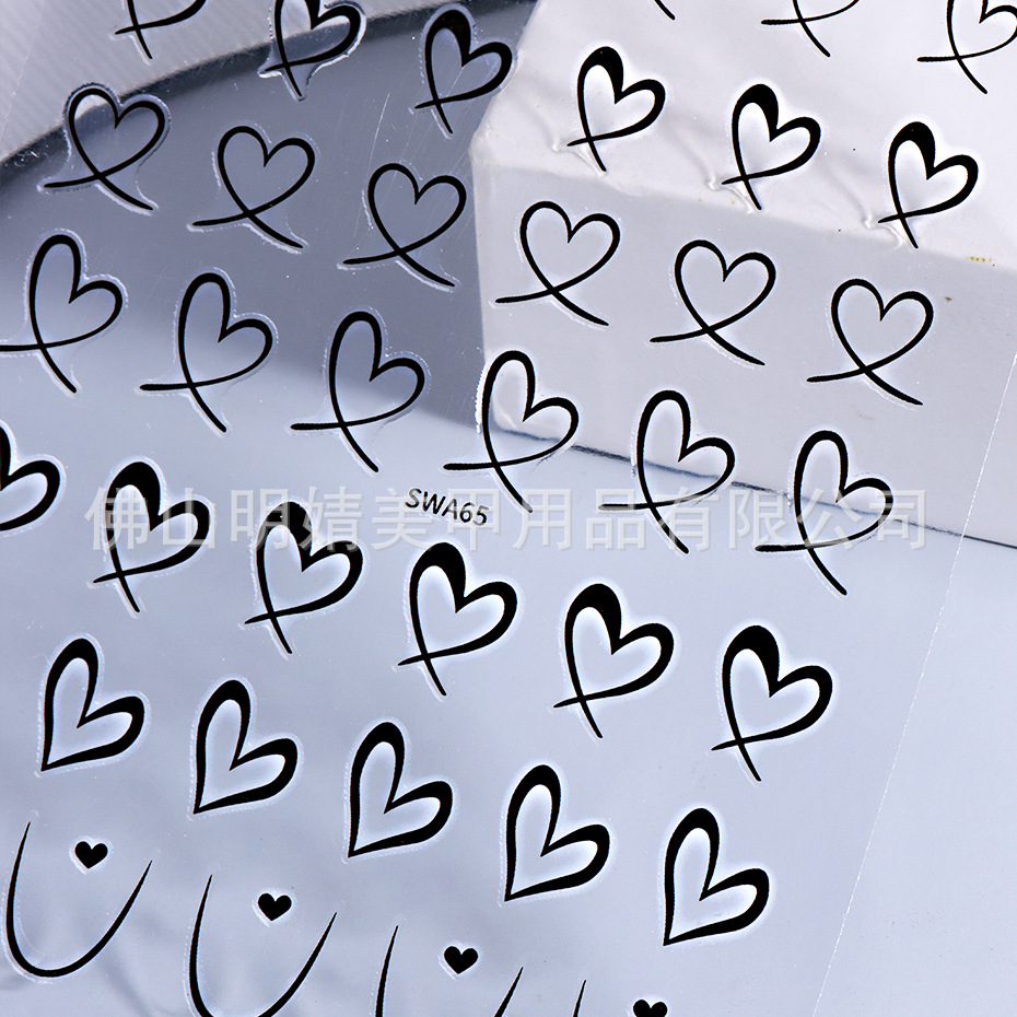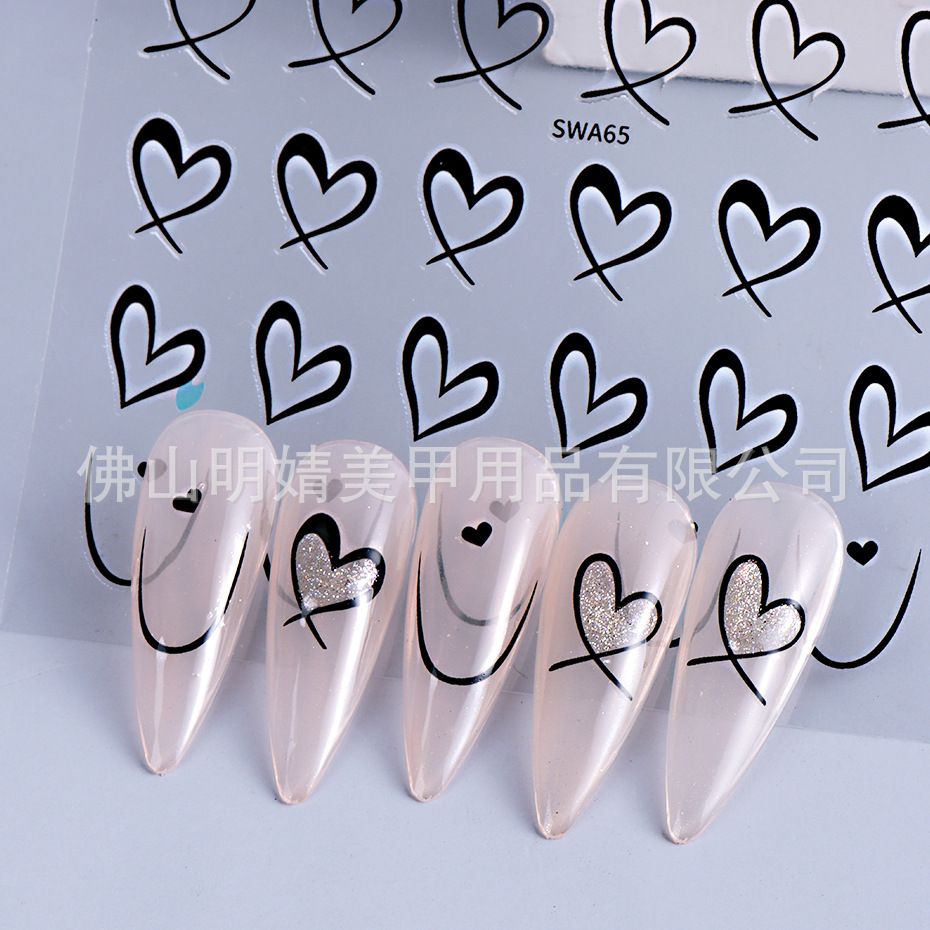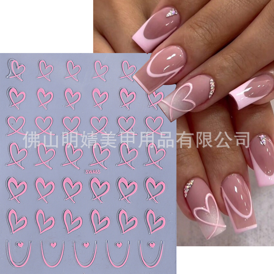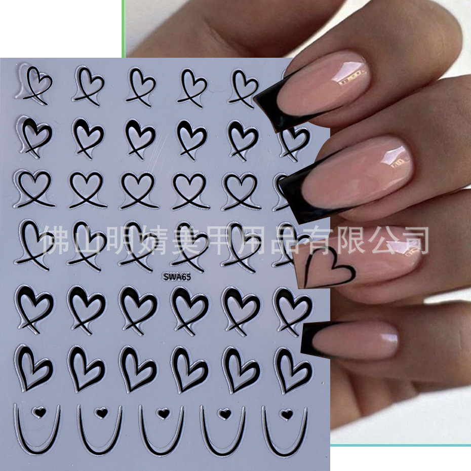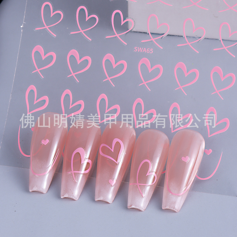 국경 간 뜨거운 판매 새로운 스티커 발렌타인 데이 러브 인 스타일 간단한 인터넷 유명 프랑스 스타일 라인 러브 네일 아트 스티커스토어 가기