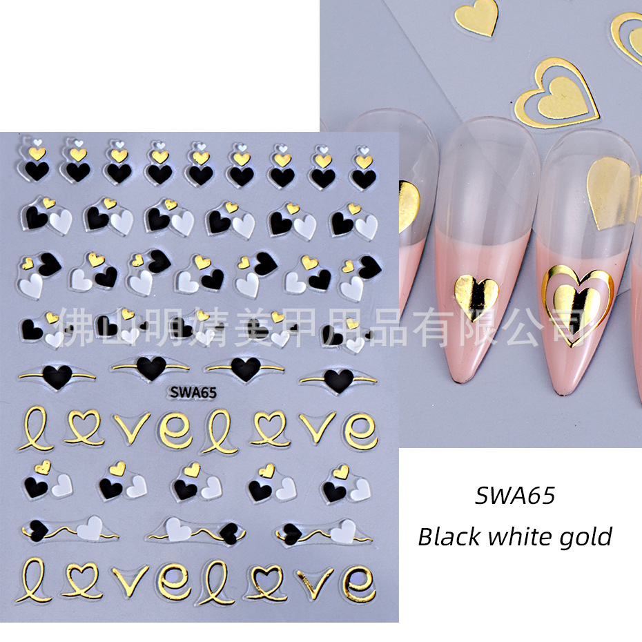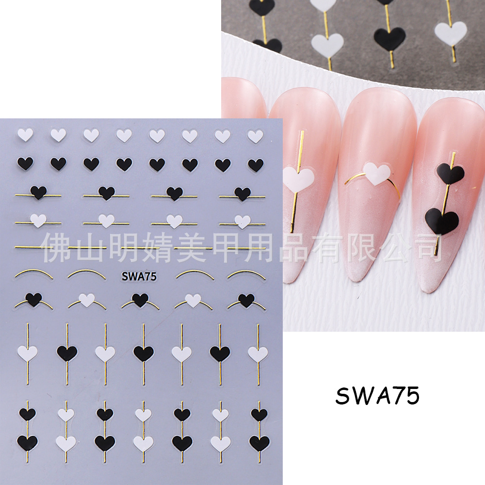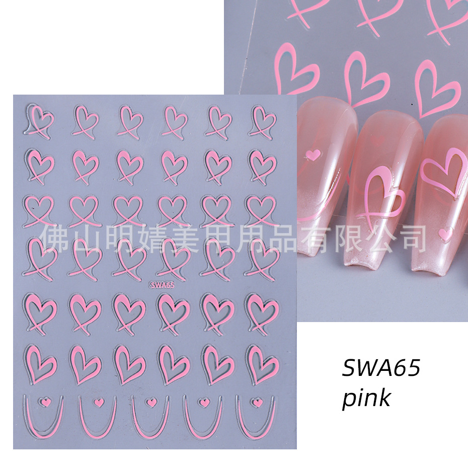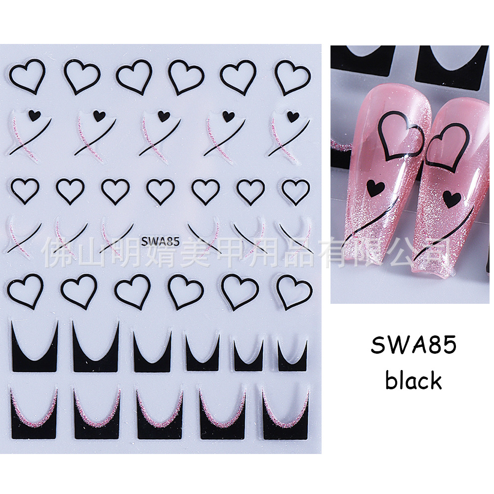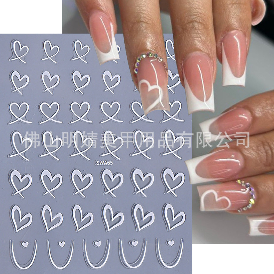 국경 간 뜨거운 판매 새로운 스티커 발렌타인 데이 러브 인 스타일 간단한 인터넷 유명 프랑스 스타일 라인 러브 네일 아트 스티커스토어 가기