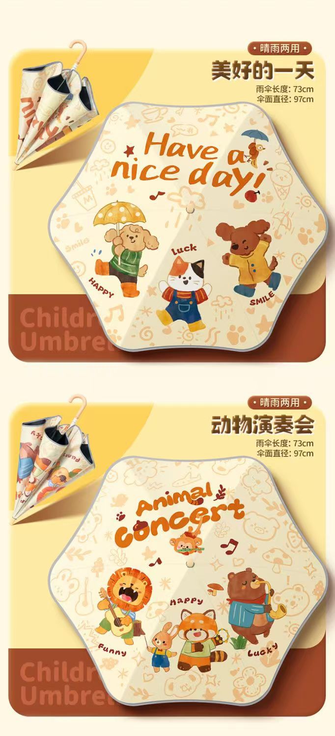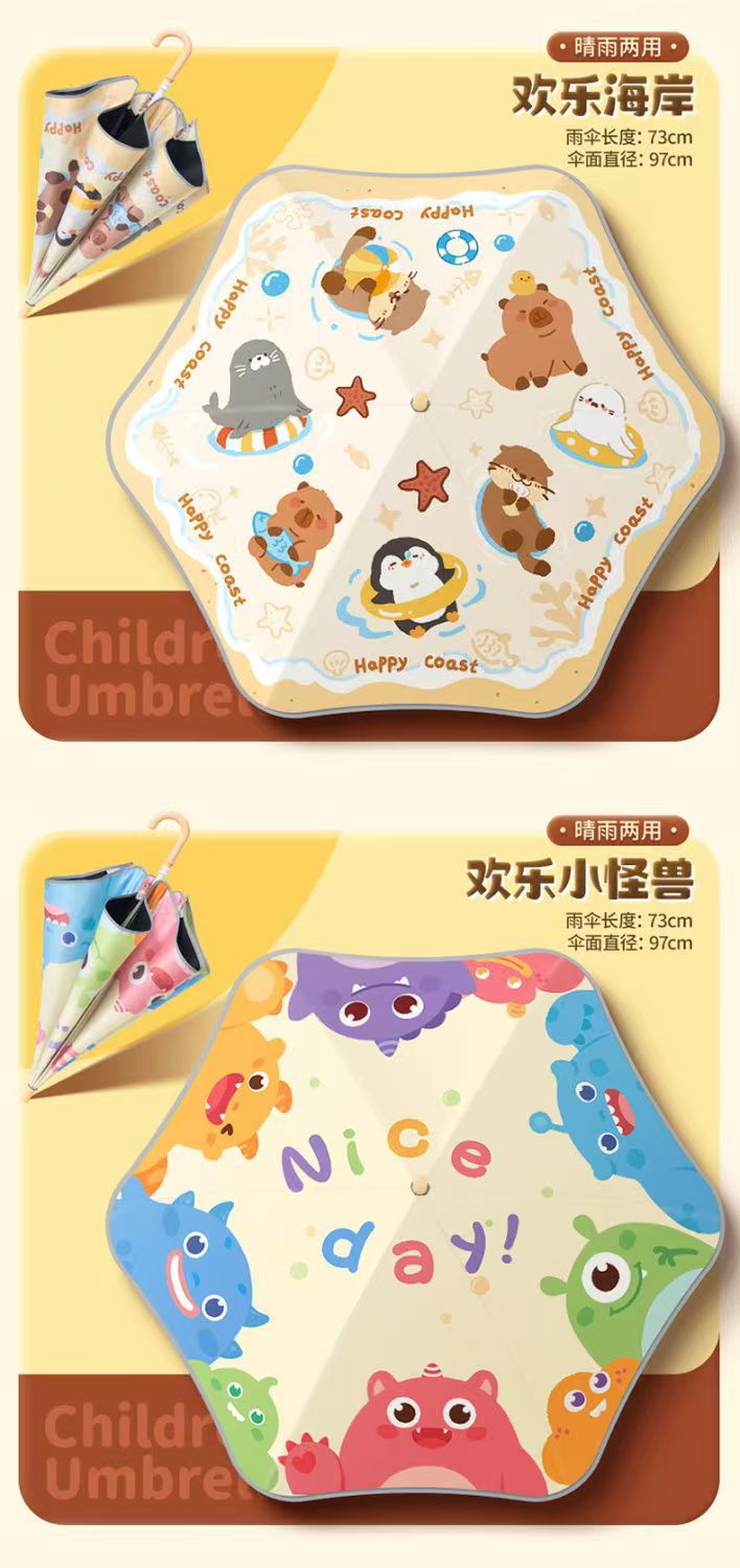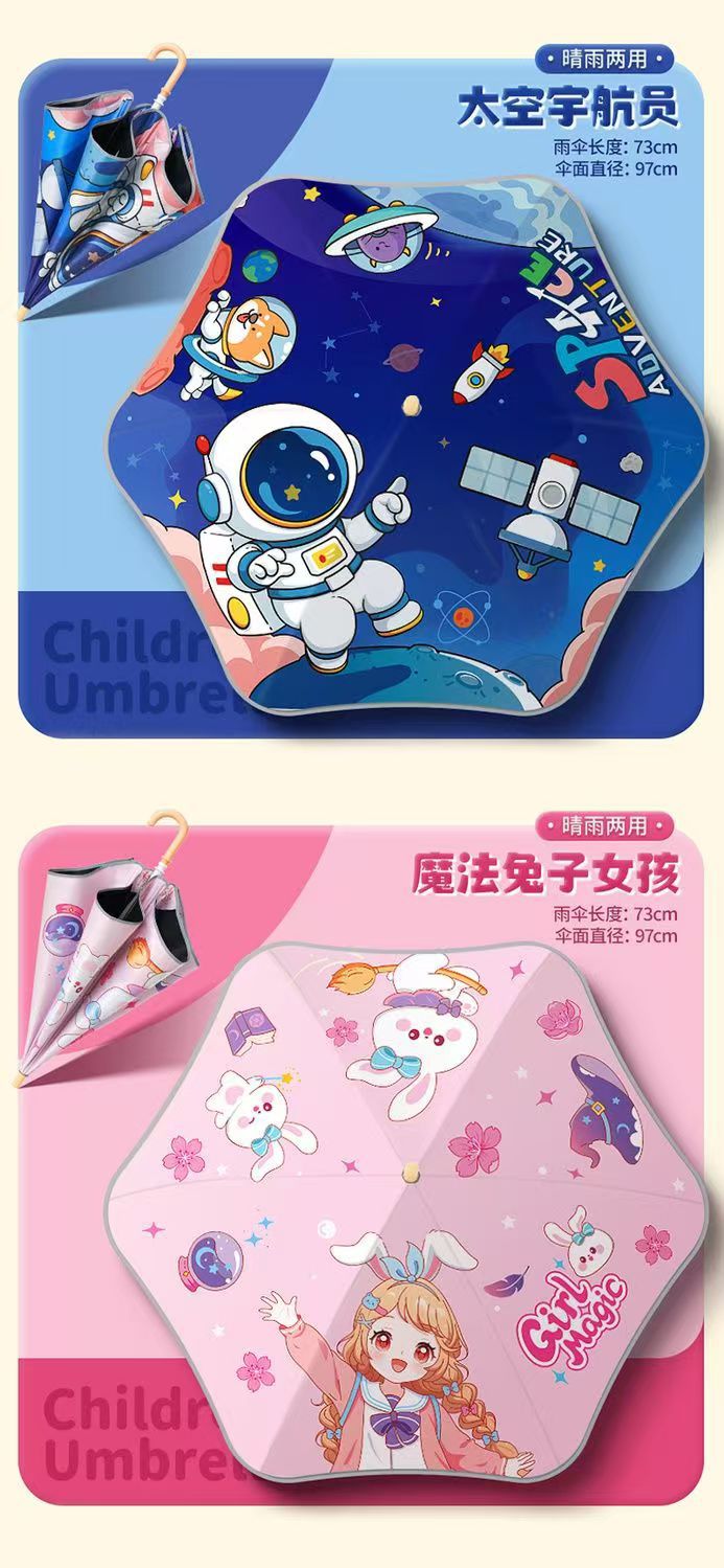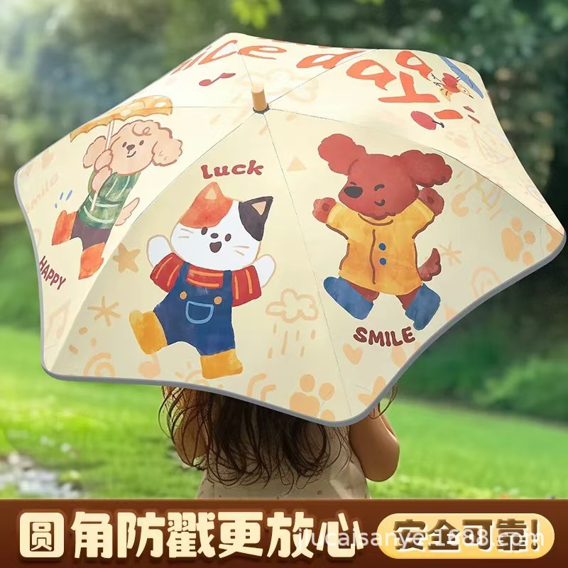 안전한 어린이 우산 둥근 반짝 아기 귀여운 만화 검은 우산 맑고 비 이중 목적 태양 우산