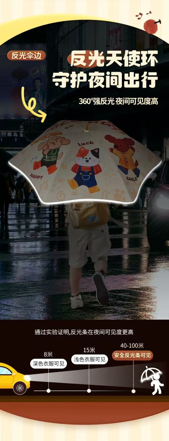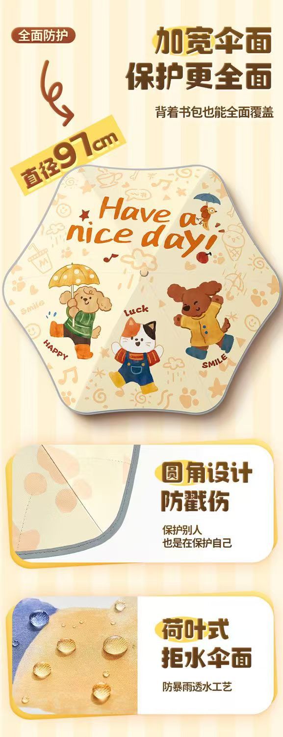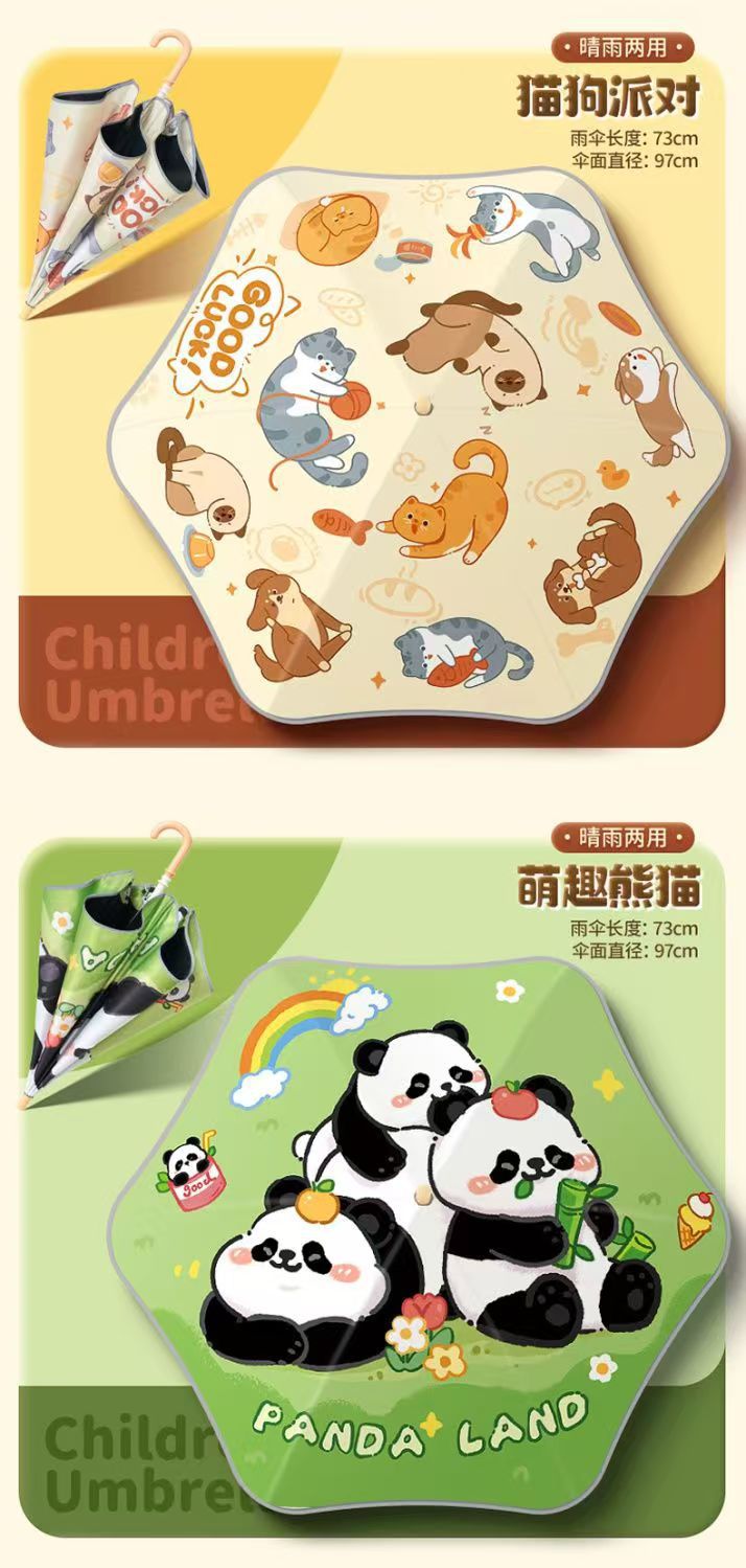 안전한 어린이 우산 둥근 반짝 아기 귀여운 만화 검은 우산 맑고 비 이중 목적 태양 우산