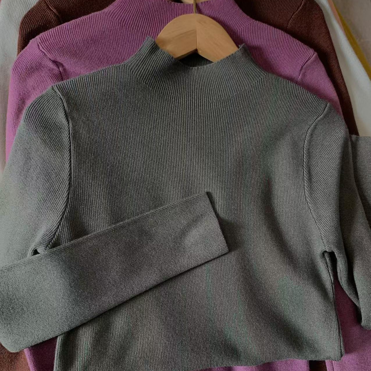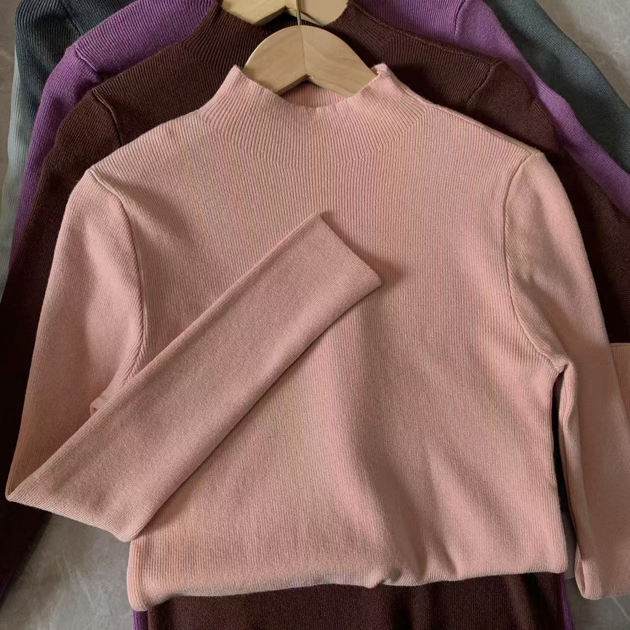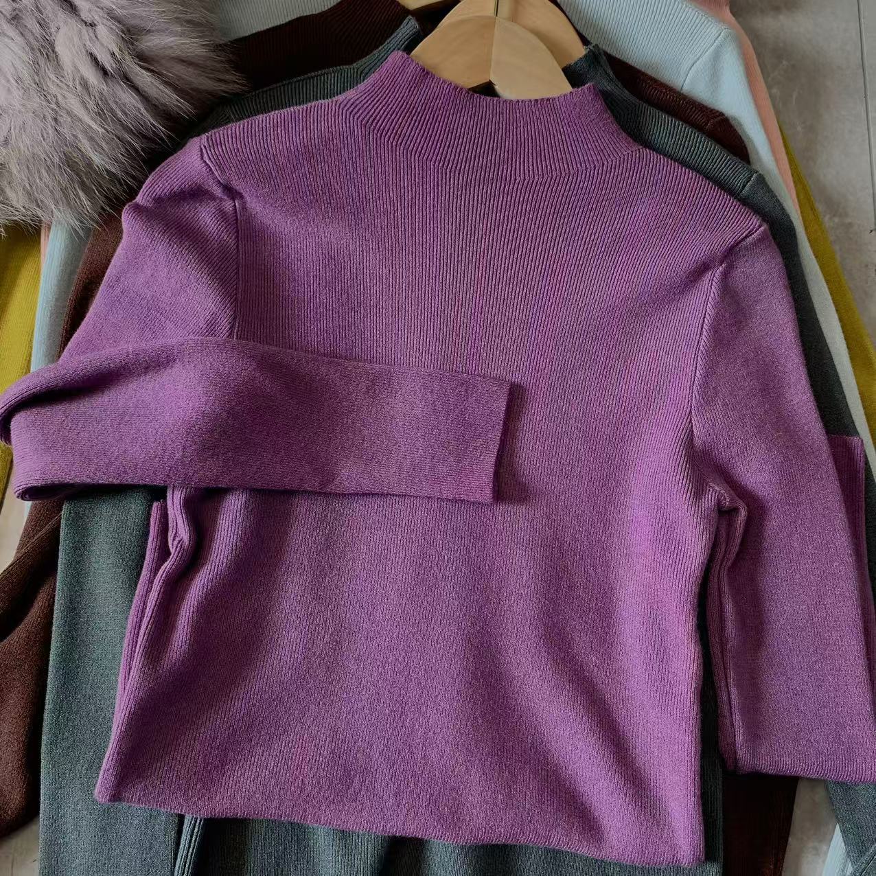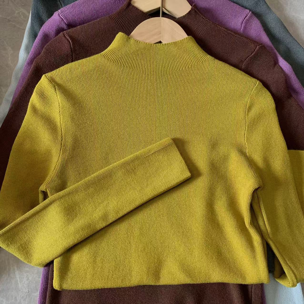 가을과 겨울 슬림 핏 슬림 핏 인테리어 스웨터 솔리드 컬러 웨스턴 스타일 새로운 긴팔 올 매치 탑을위한 하프 터틀넥 스웨터 베이스스토어 가기