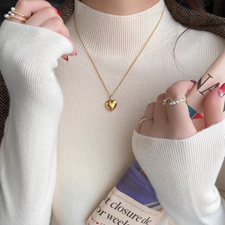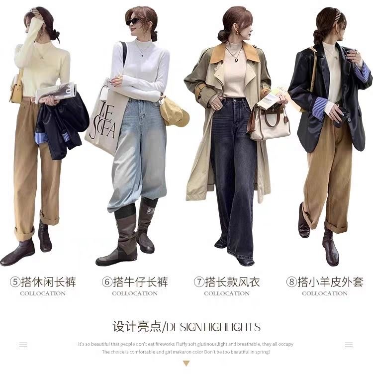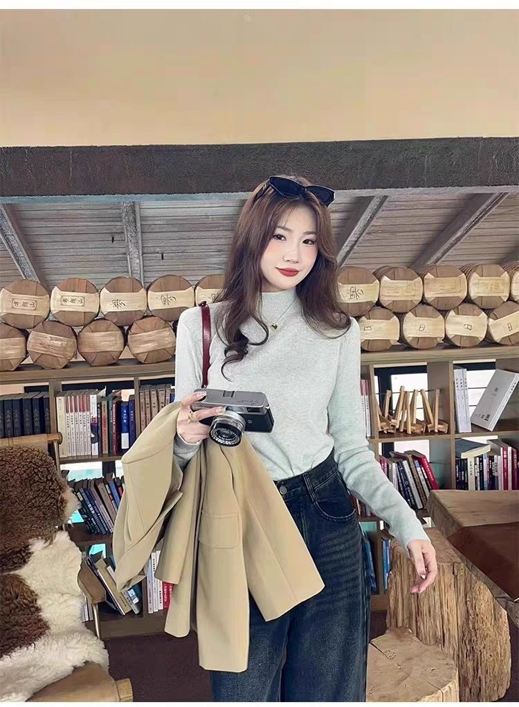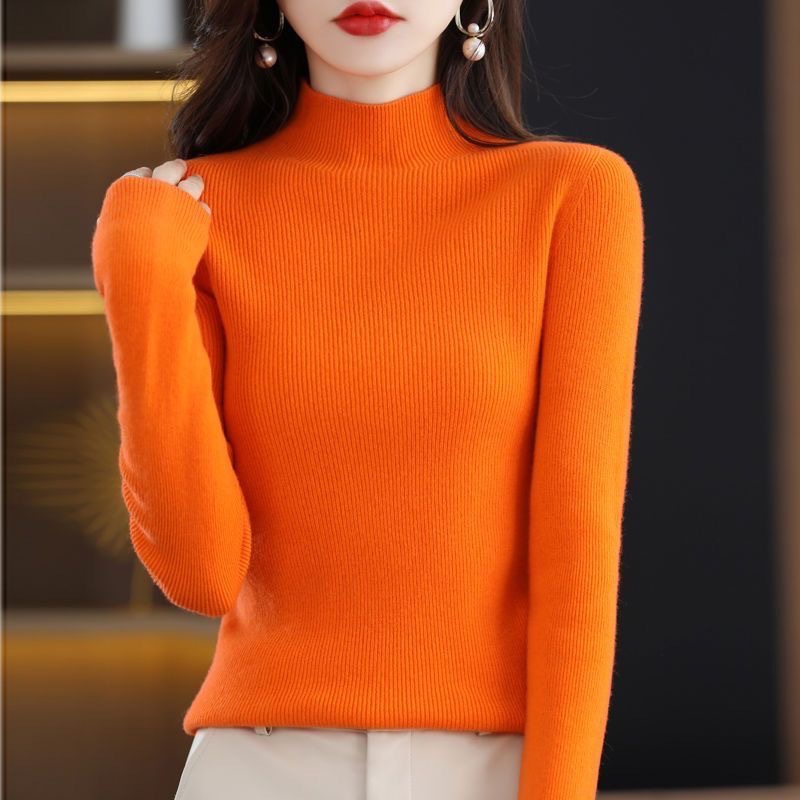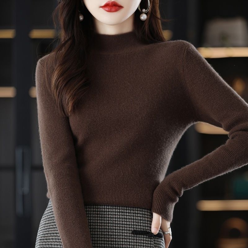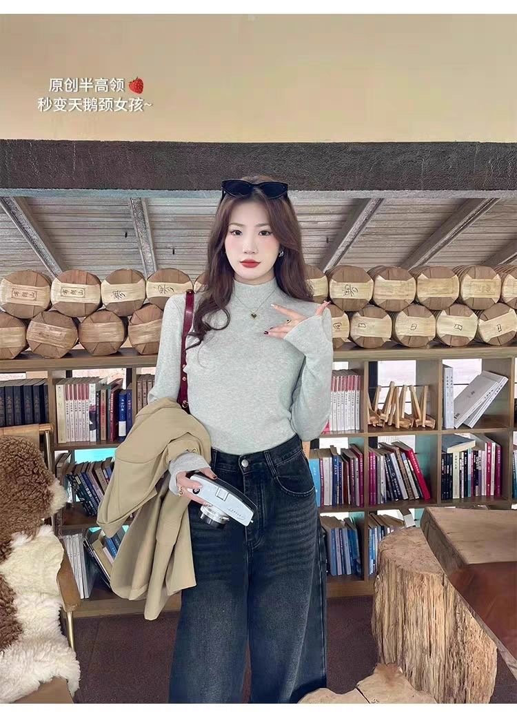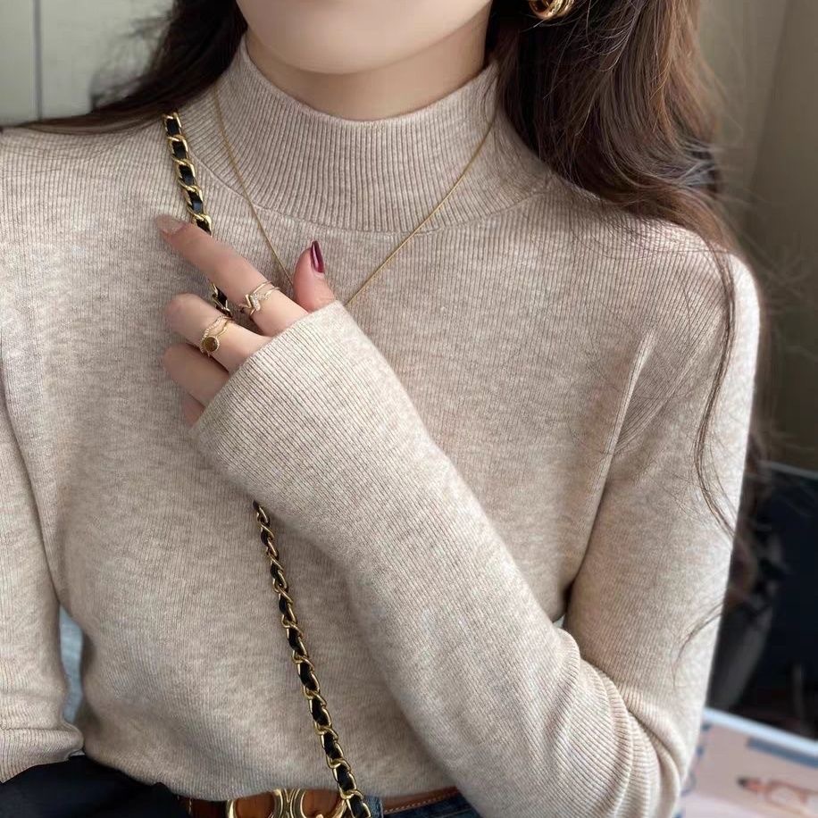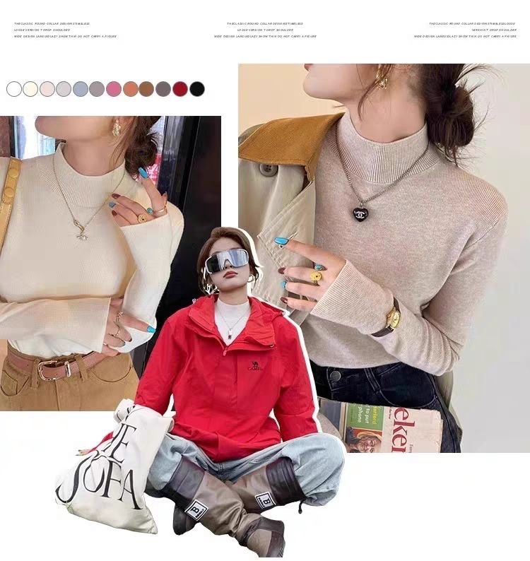 가을과 겨울 슬림 핏 슬림 핏 인테리어 스웨터 솔리드 컬러 웨스턴 스타일 새로운 긴팔 올 매치 탑을위한 하프 터틀넥 스웨터 베이스스토어 가기