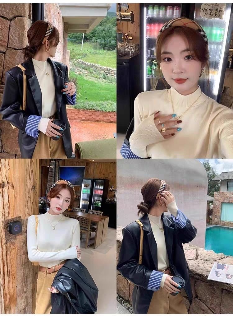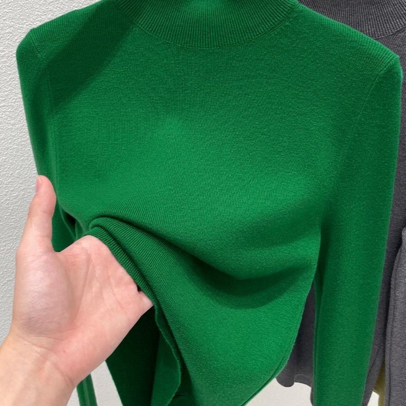 가을과 겨울 슬림 핏 슬림 핏 인테리어 스웨터 솔리드 컬러 웨스턴 스타일 새로운 긴팔 올 매치 탑을위한 하프 터틀넥 스웨터 베이스