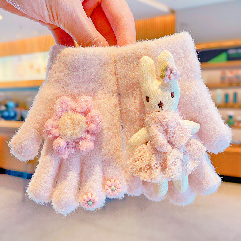 어린이 장갑 가을과 겨울 소녀 다섯 손가락 따뜻한 감기 방지 아기 귀여운 유치원 어린이 소녀 손가락 커버