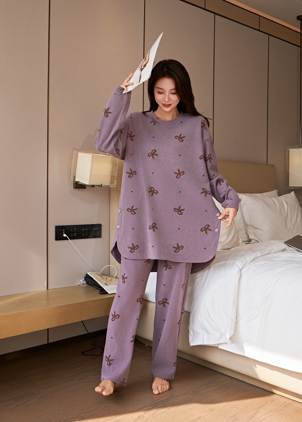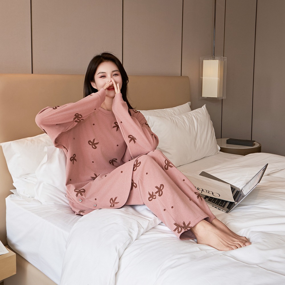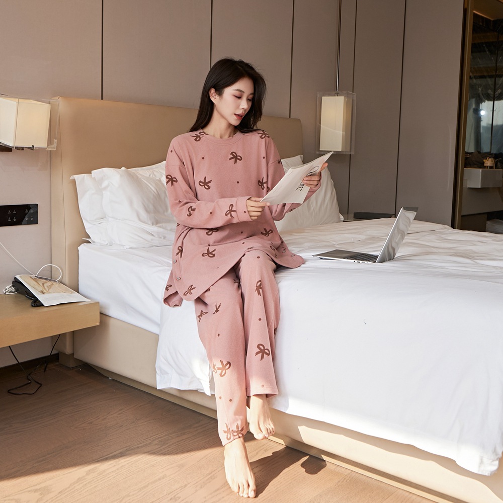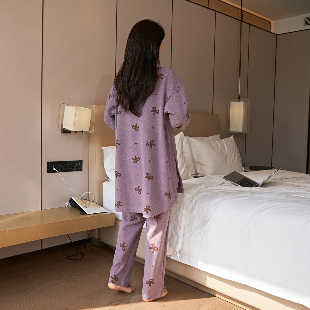 잠옷 여성 플러스 사이즈 200 진드 벨벳 연령 감소 활 인쇄 바지 긴 소매 느슨한 외부 착용 세트스토어 가기