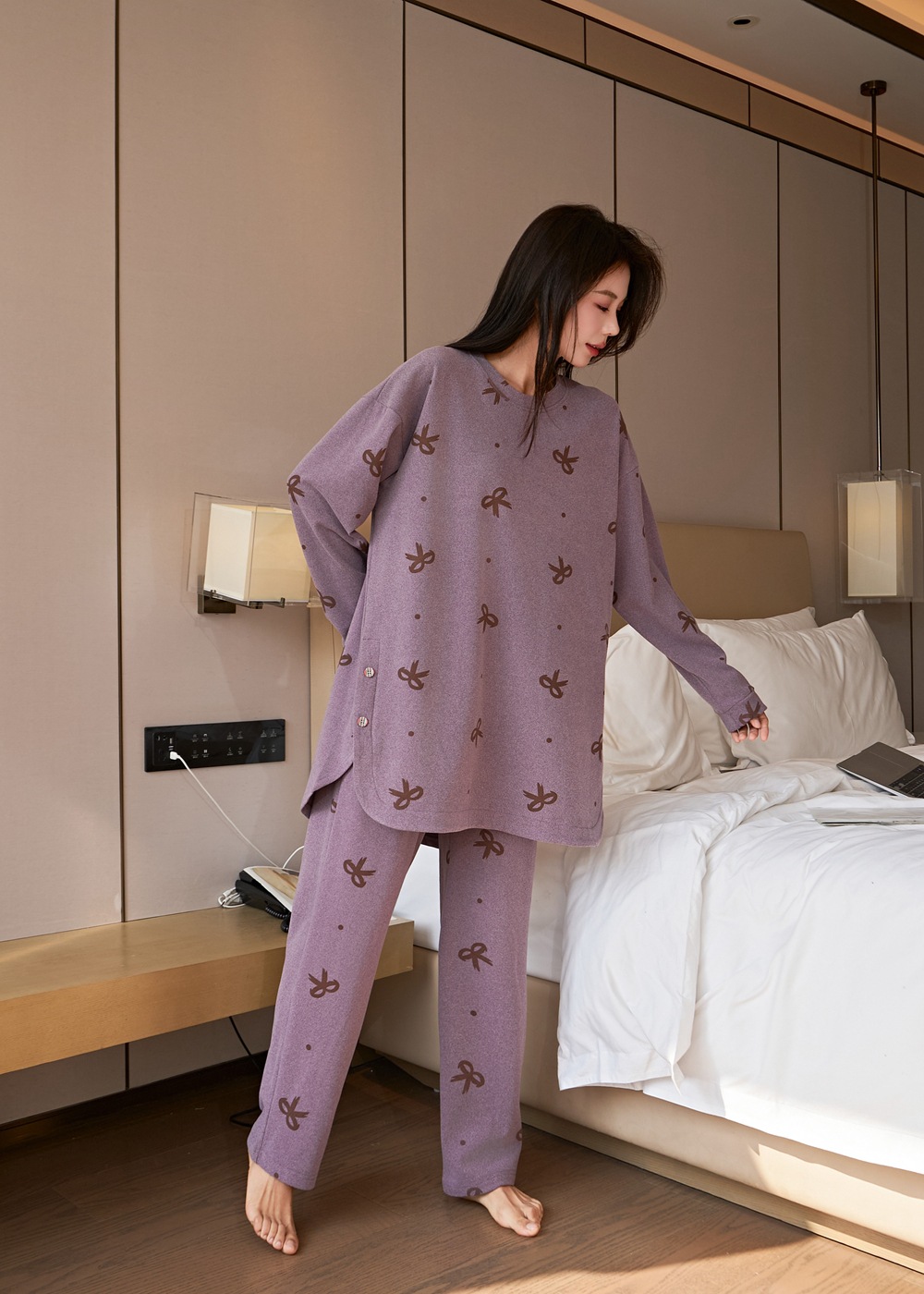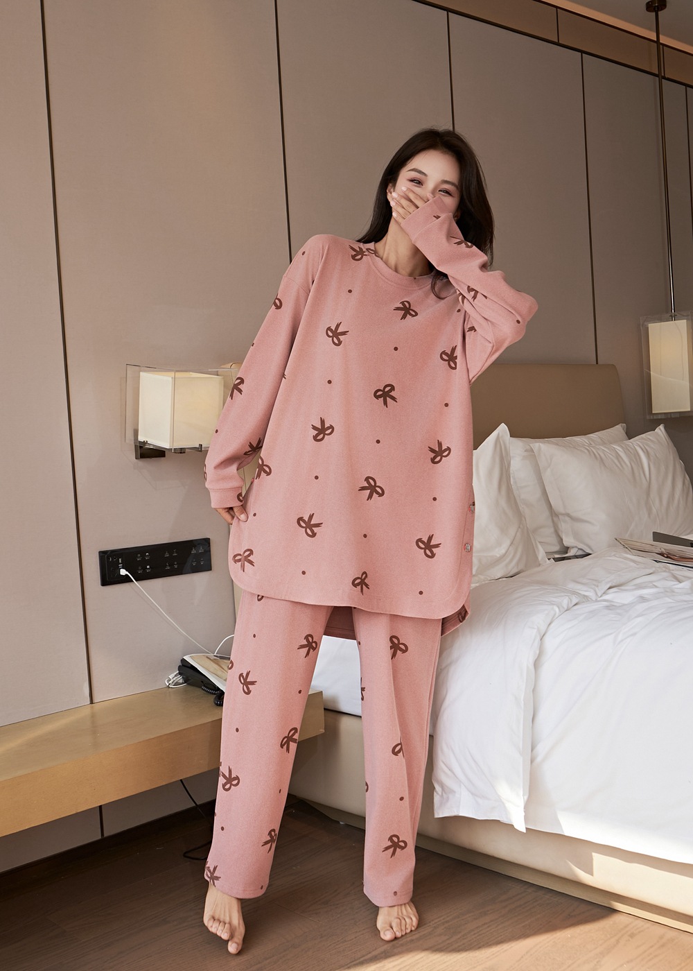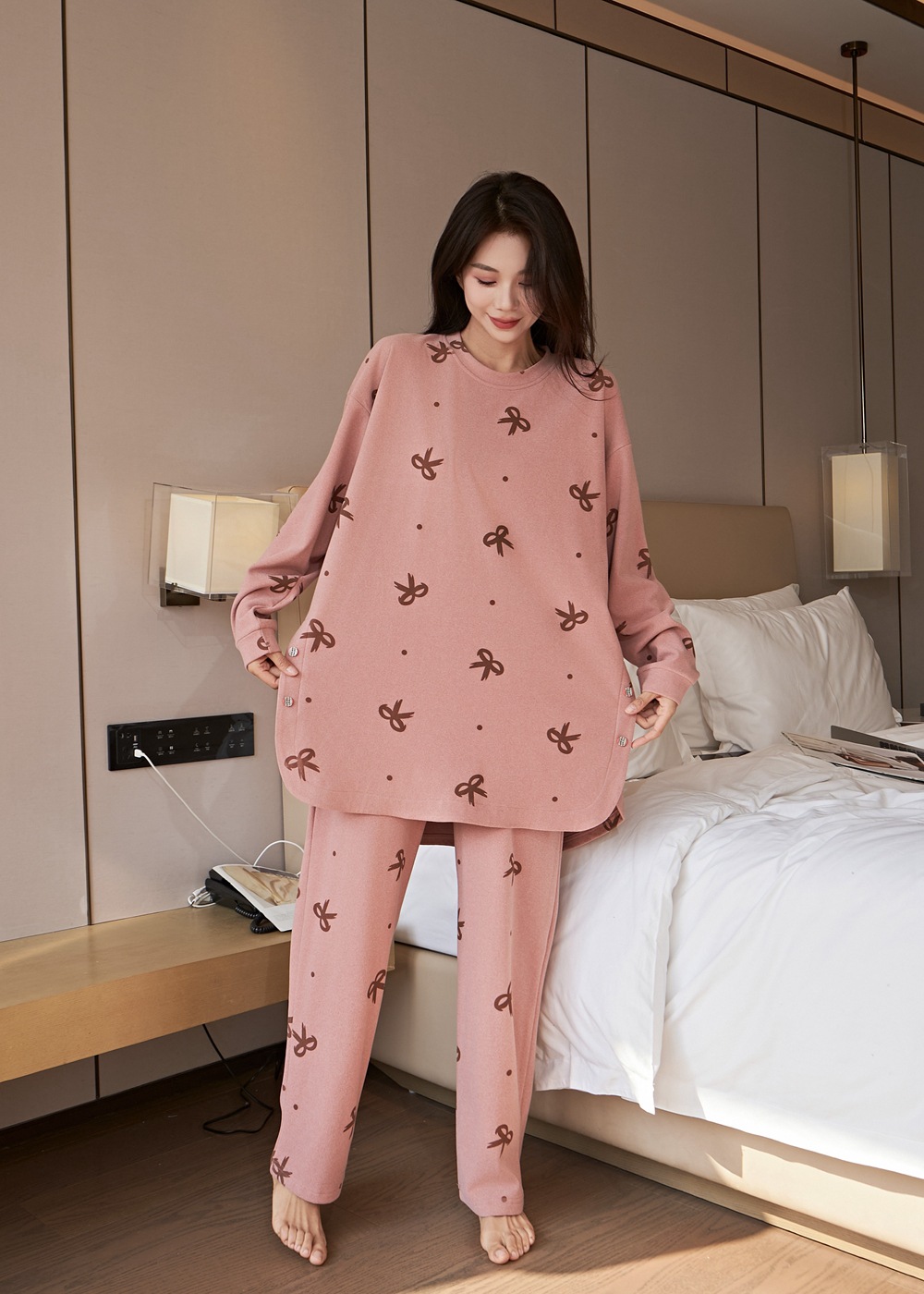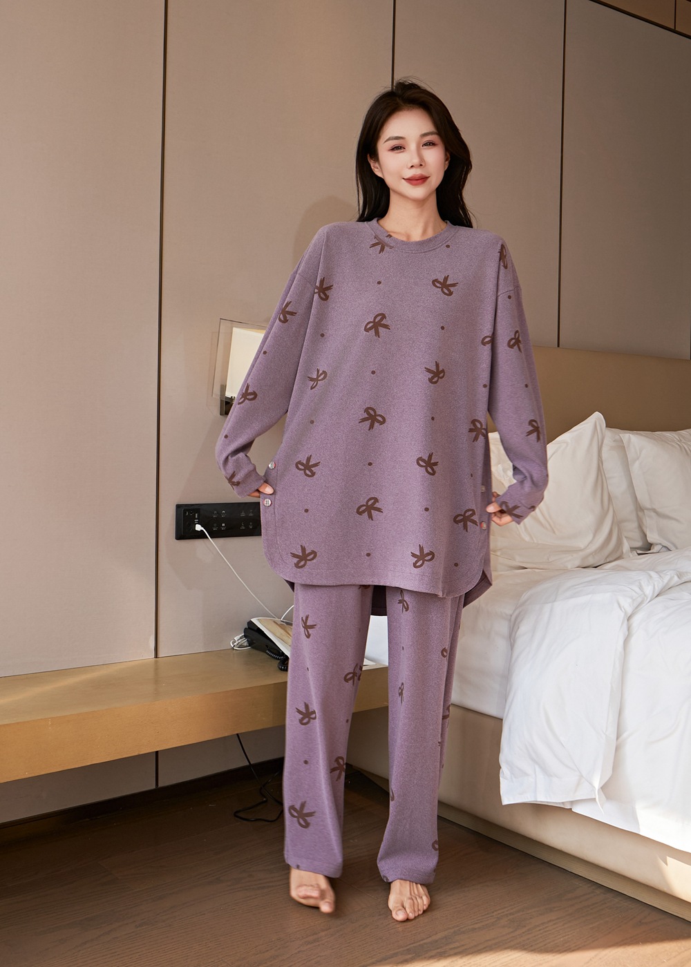 잠옷 여성 플러스 사이즈 200 진드 벨벳 연령 감소 활 인쇄 바지 긴 소매 느슨한 외부 착용 세트스토어 가기