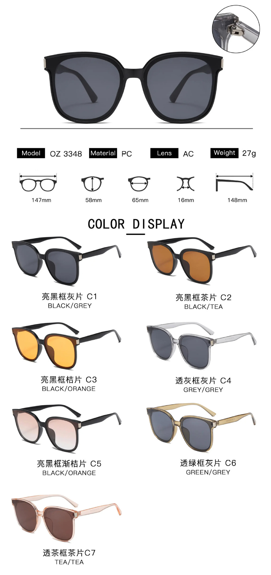 • C1 밝은 검정색 프레임 회색 필름