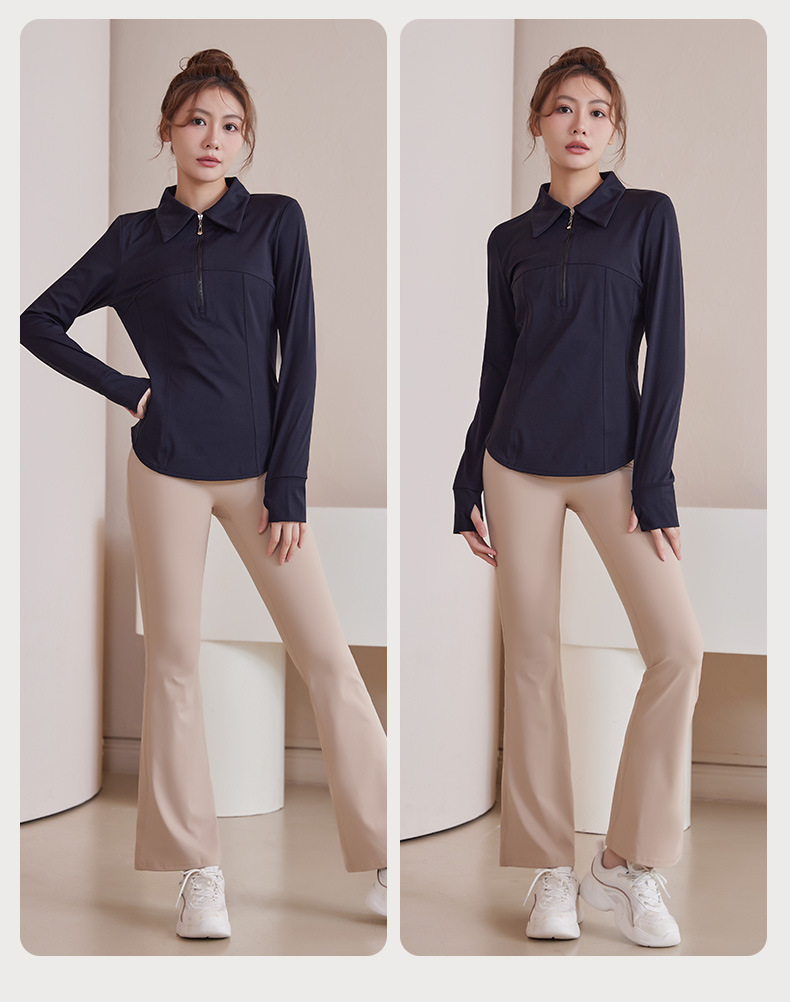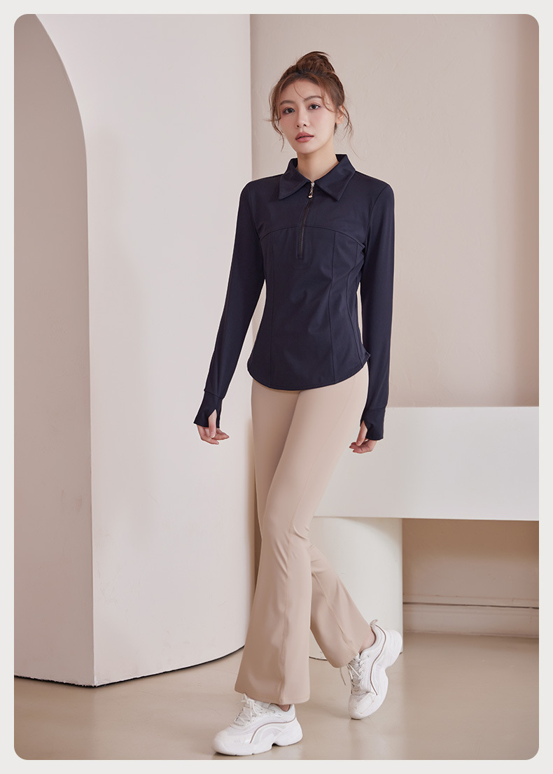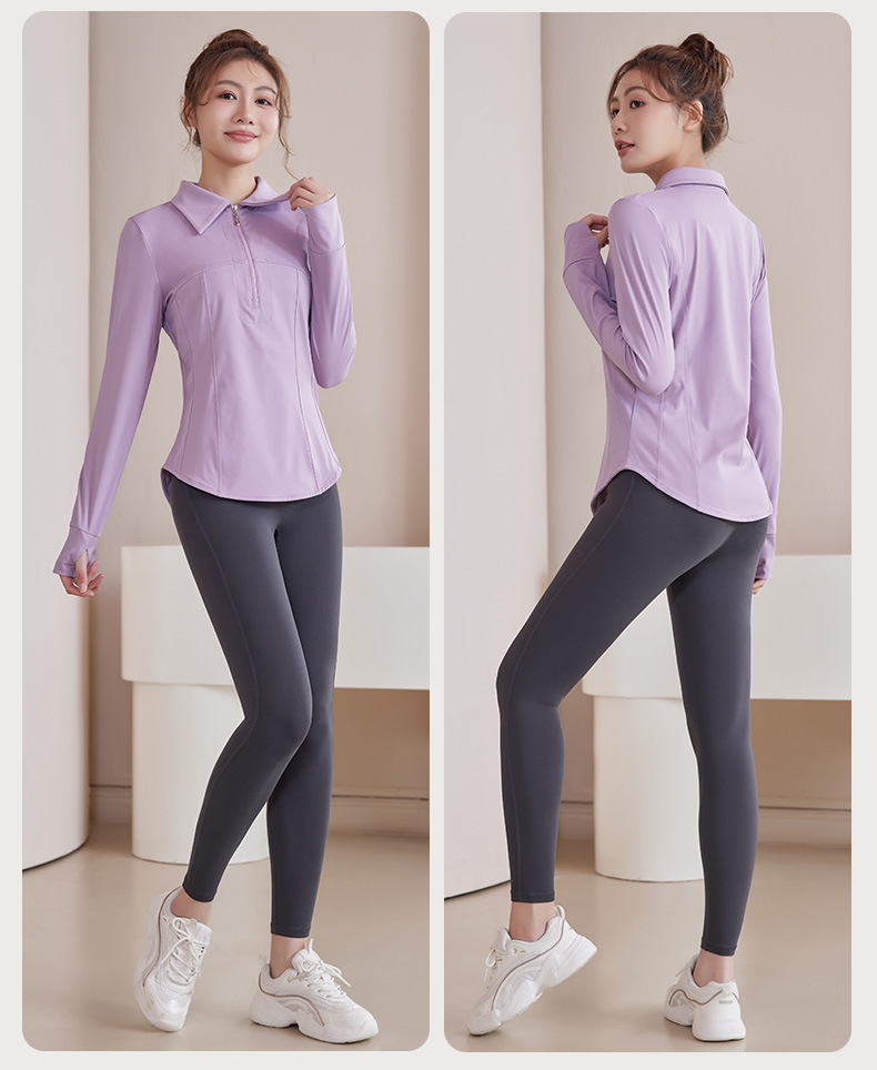 플러스 사이즈 가을과 겨울 슬리밍 러닝 탑 통통녀 요가 티셔츠 여성용 하프 지퍼 옷깃 피트니스 옷 긴 소매 재킷