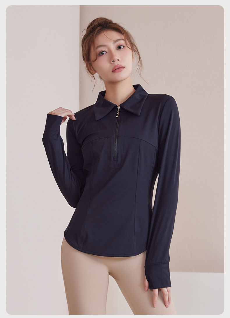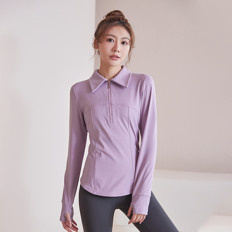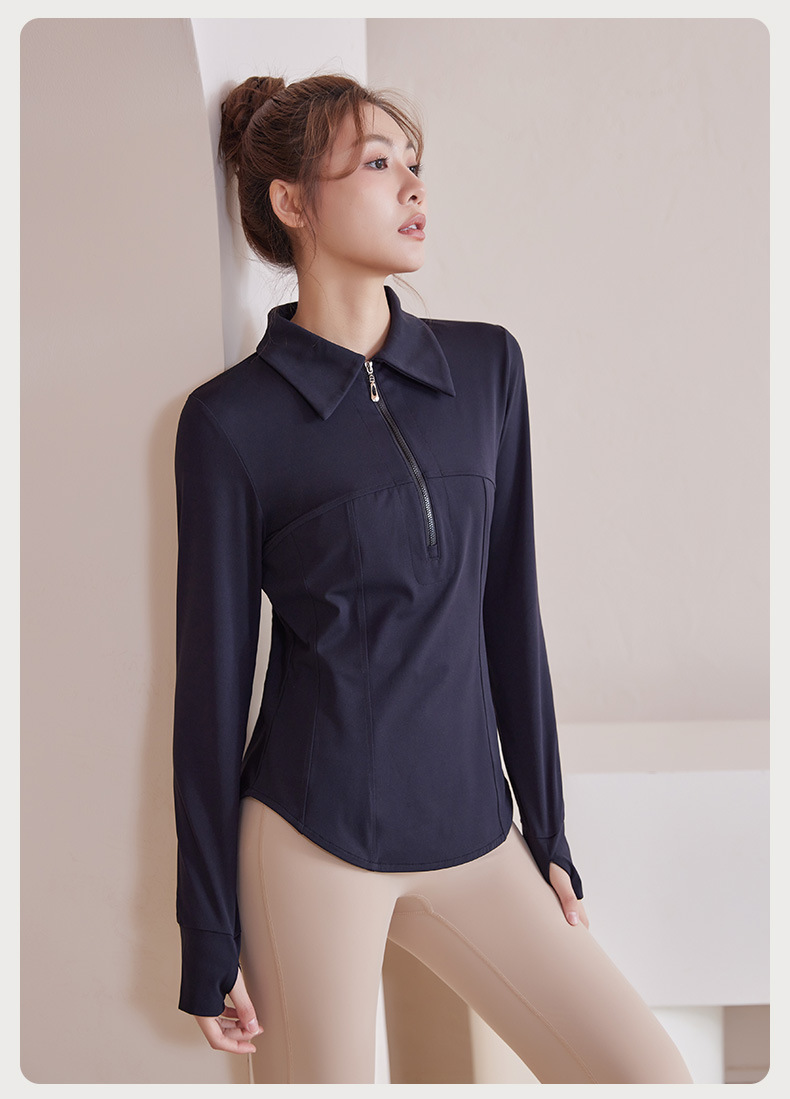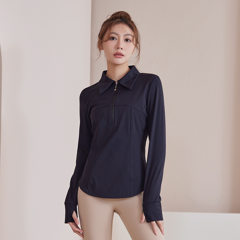 플러스 사이즈 가을과 겨울 슬리밍 러닝 탑 통통녀 요가 티셔츠 여성용 하프 지퍼 옷깃 피트니스 옷 긴 소매 재킷스토어 가기