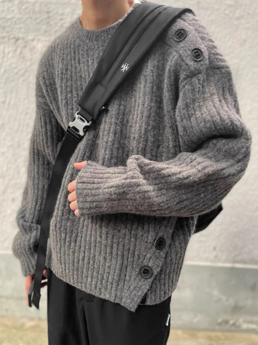 아메리칸 레트로 버클 니트 스웨터 남성용 헤비 그레이 재킷 디자인 센스 니쉬 하이 엔드 센스 트렌디 브랜드 스웨터