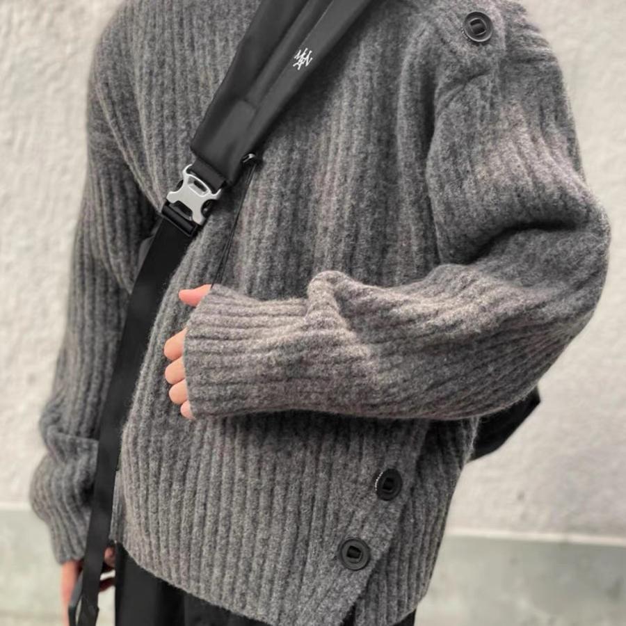 아메리칸 레트로 버클 니트 스웨터 남성용 헤비 그레이 재킷 디자인 센스 니쉬 하이 엔드 센스 트렌디 브랜드 스웨터스토어 가기