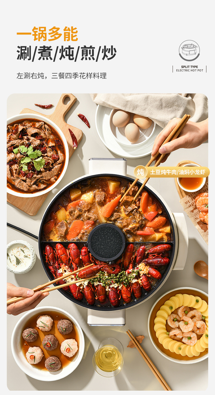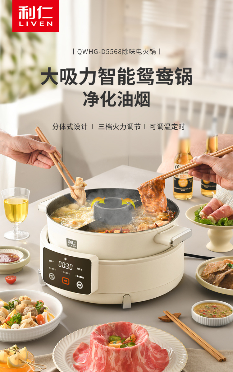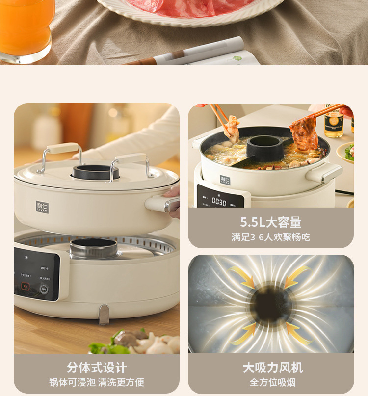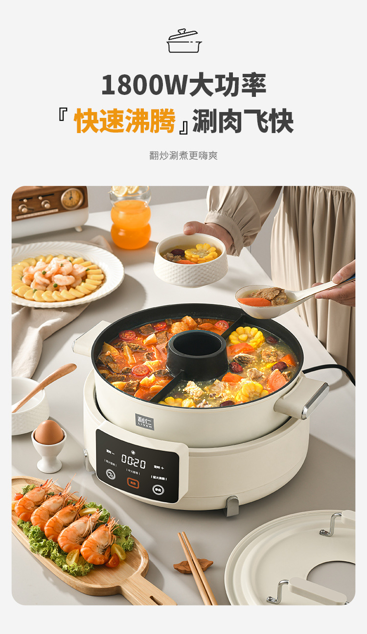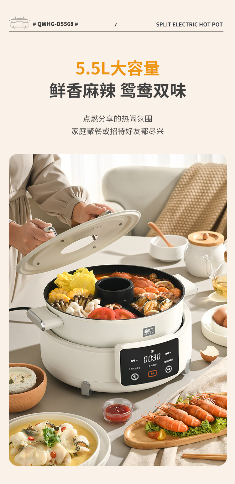 리렌 QWHG-D5568 전기 냄비 분리형 오리지널 냄비 논스틱 멀티 기능 요리 냄비스토어 가기