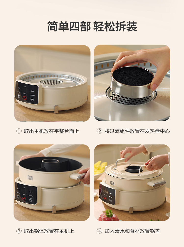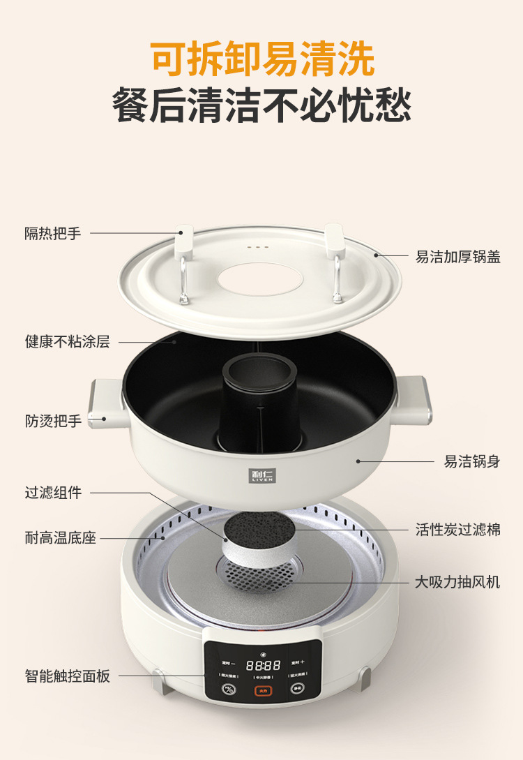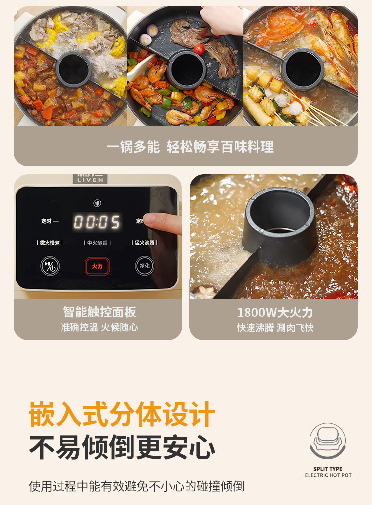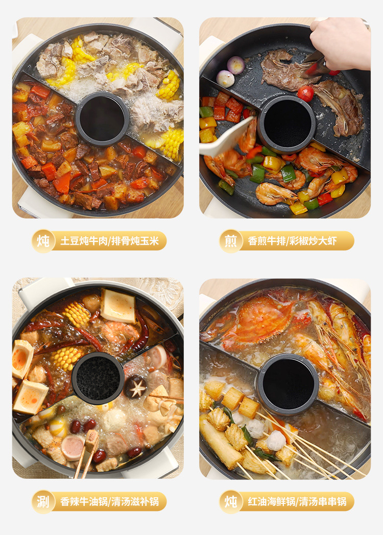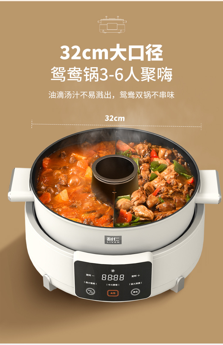 리렌 QWHG-D5568 전기 냄비 분리형 오리지널 냄비 논스틱 멀티 기능 요리 냄비스토어 가기
