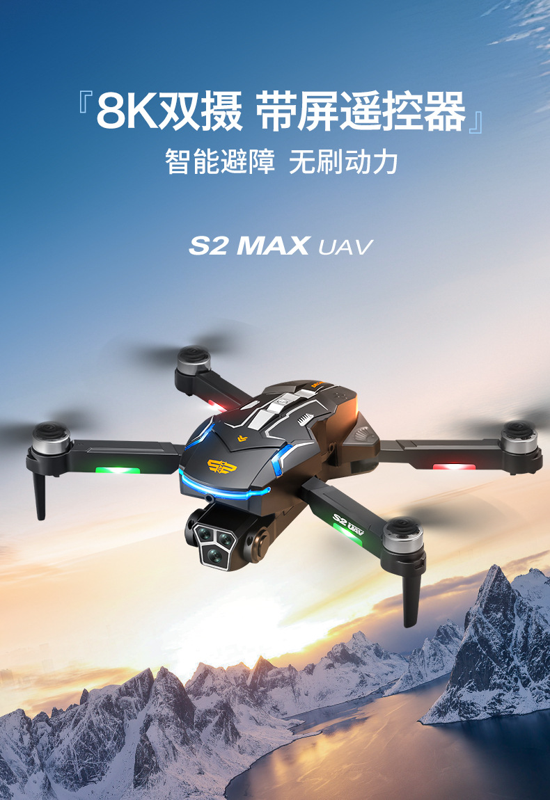 스크린 리모콘을 갖춘 국경 간 신제품 S2 드론 8K 고화질 항공 사진 원격 제어 항공기 쿼드콥터 대외 무역