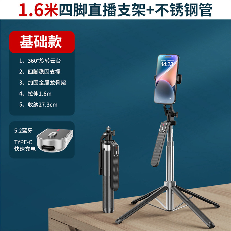 P185MINI 알루미늄 합금 테트라 포드 블루투스 셀카 스틱 유니버설 휴대 전화 라이브 방송 바닥 스탠드 핸드 헬드 안정기스토어 가기