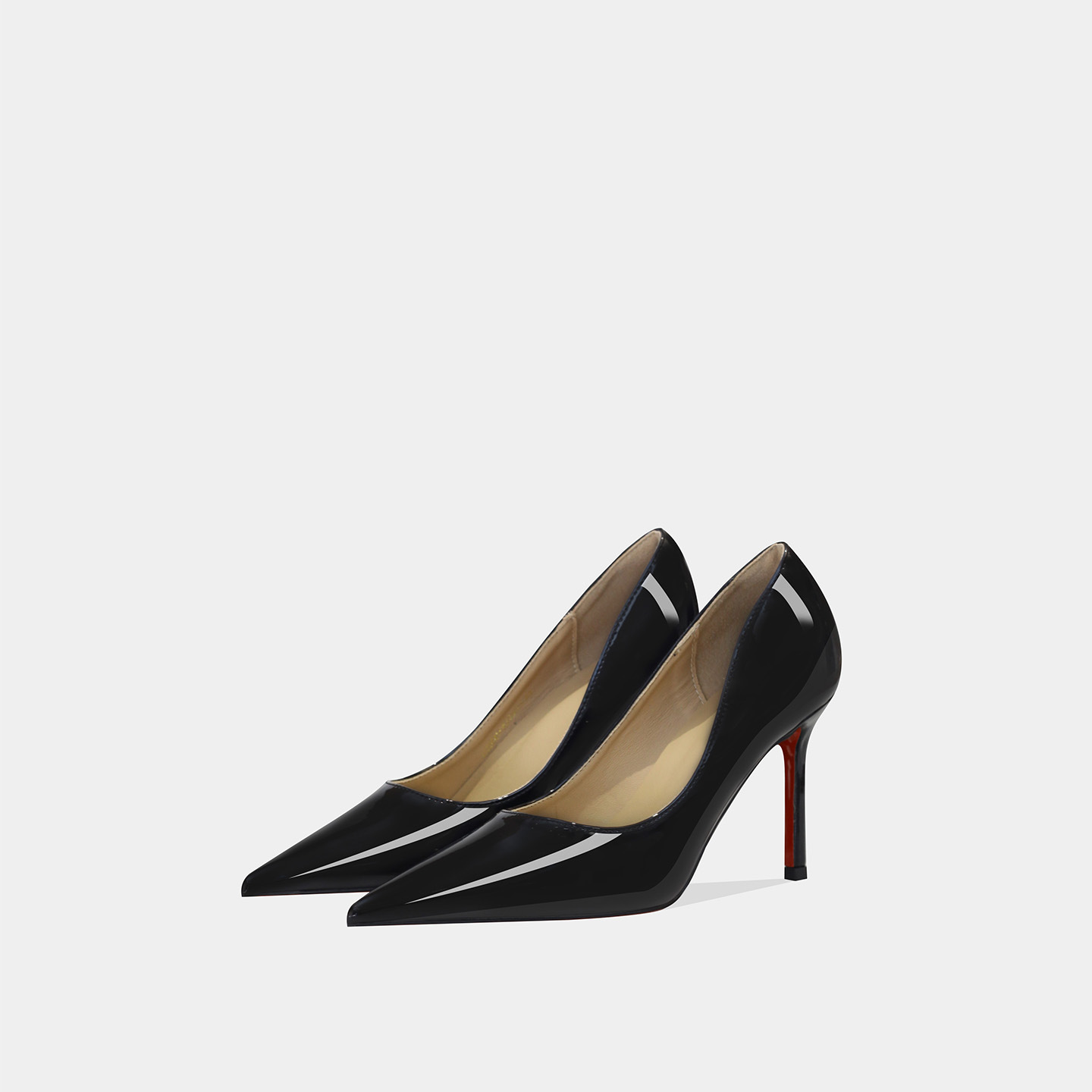 페인트 가죽 다용도 2025 가을 신상 누드 색상 얕은 굽 구두 우아하고 패셔너블하며 섹시한 레드솔 얇은 굽 하이힐 여성용