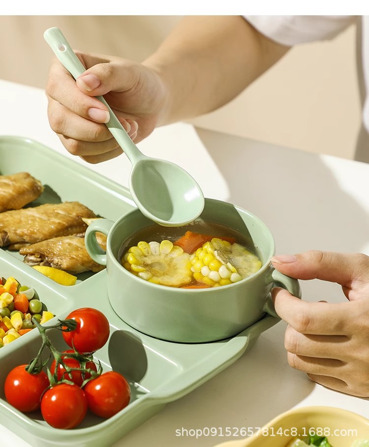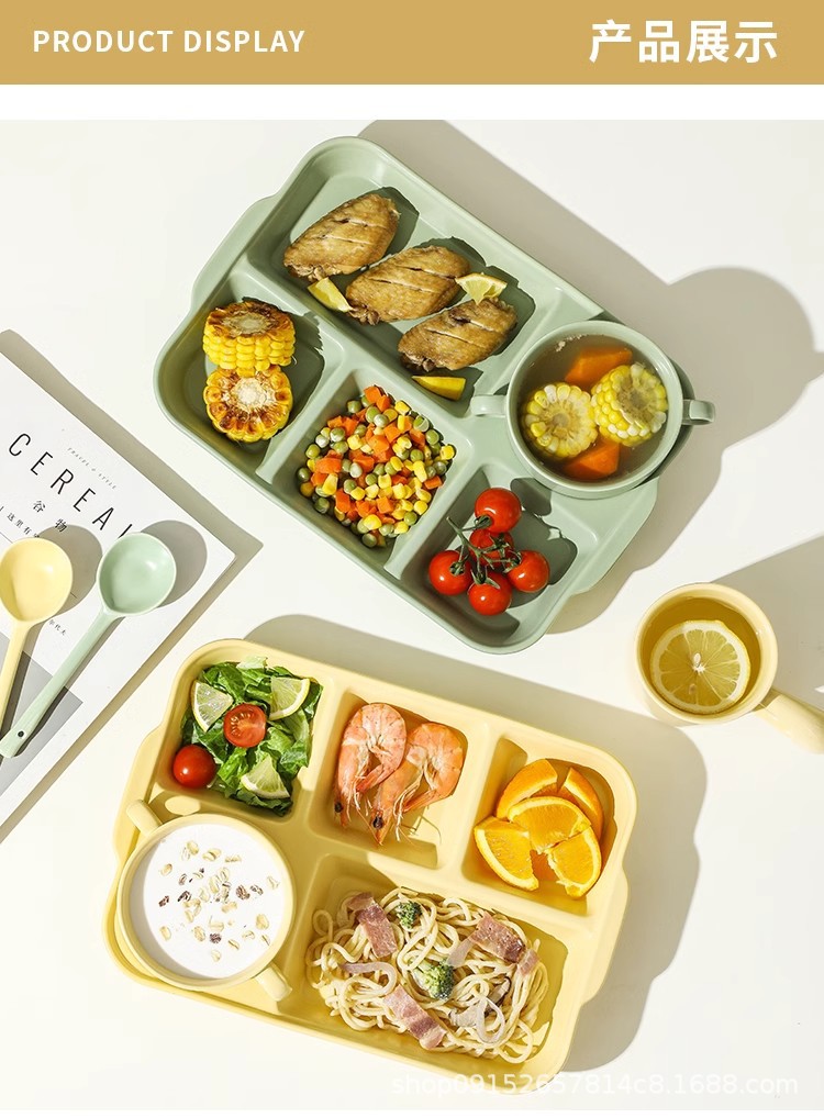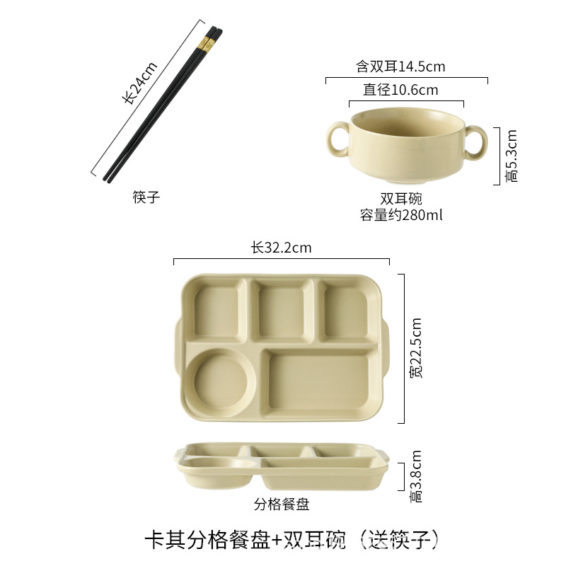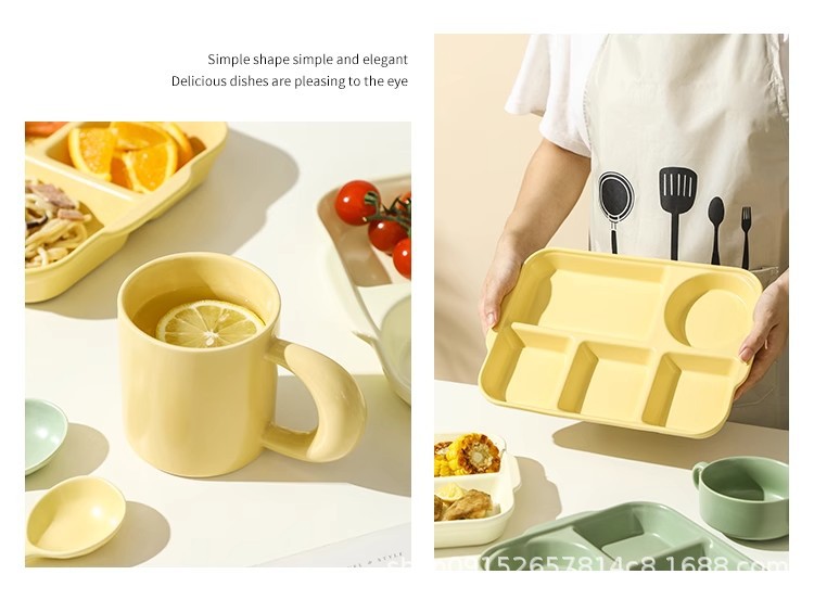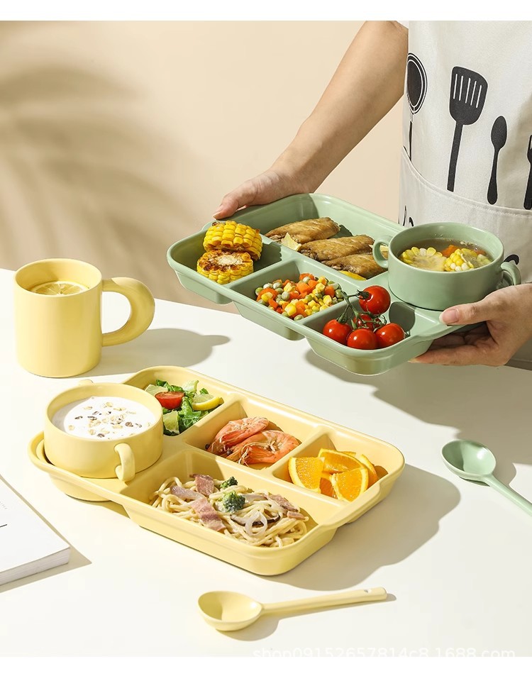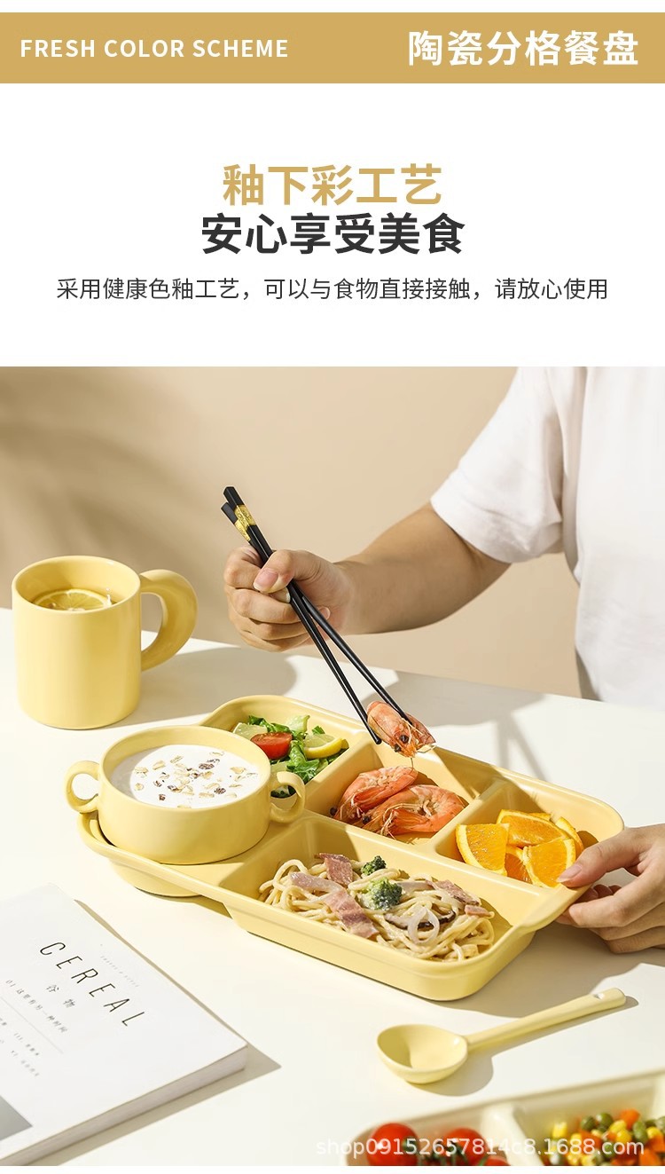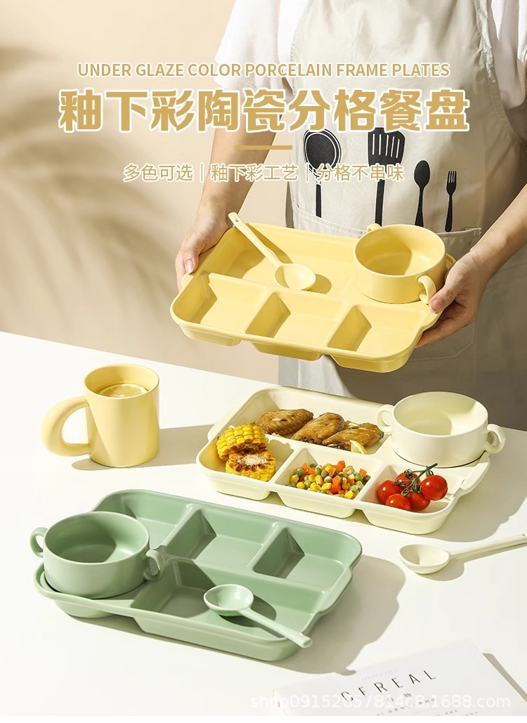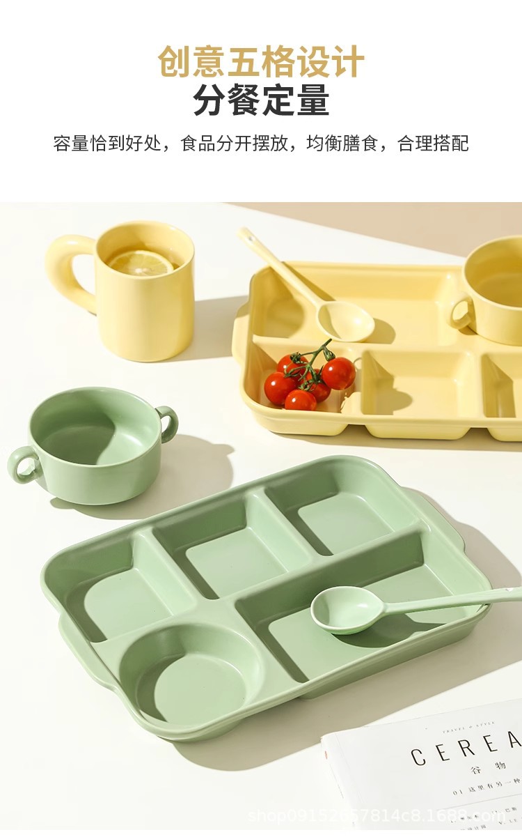 북유럽 식사 5 그리드 식기 분리 된 디너 플레이트 지방 감소 정량적 세라믹 도시락 가정용 사무실