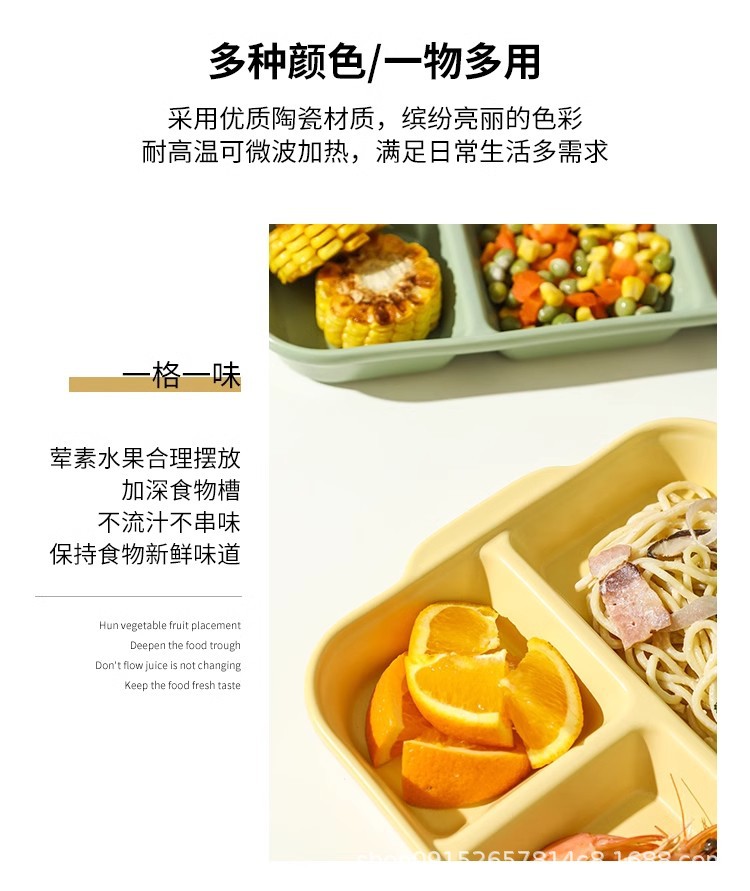 북유럽 식사 5 그리드 식기 분리 된 디너 플레이트 지방 감소 정량적 세라믹 도시락 가정용 사무실스토어 가기