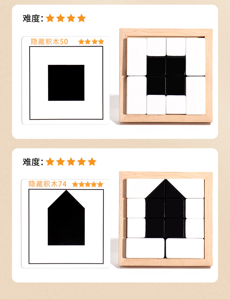 퍼즐 숨겨진 건물 블록 퍼즐 창조적 인 나무 흑백 블록 조립 장난감 파워 어린이 3 차원 공간 사고 훈련스토어 가기