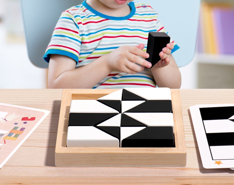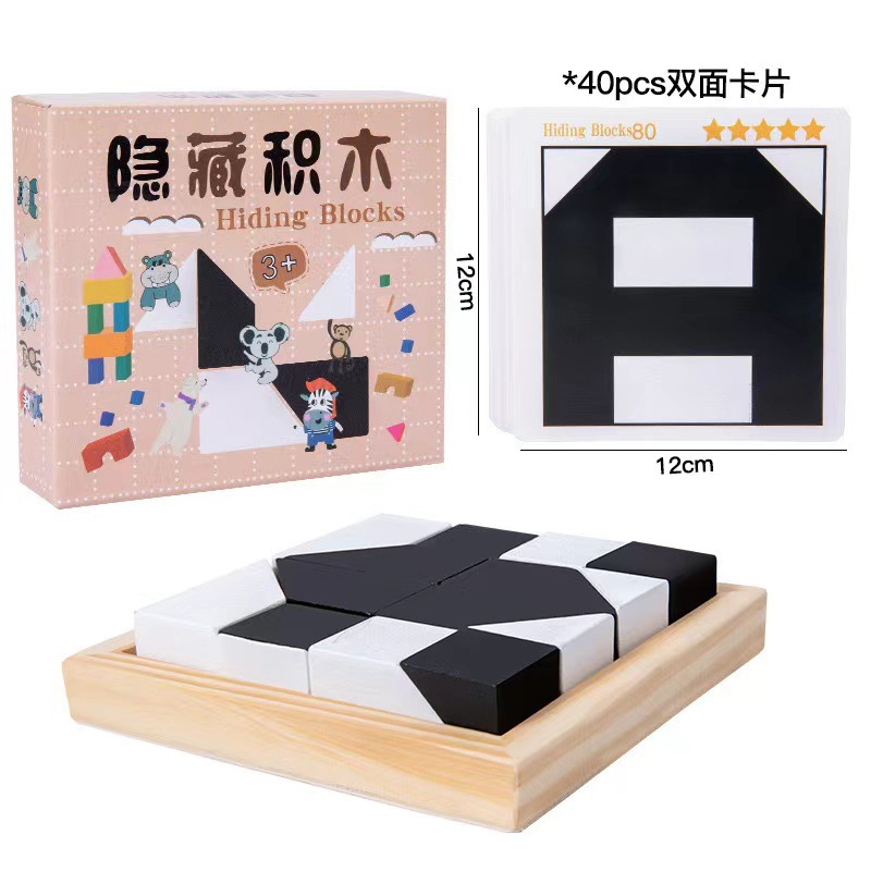 퍼즐 숨겨진 건물 블록 퍼즐 창조적 인 나무 흑백 블록 조립 장난감 파워 어린이 3 차원 공간 사고 훈련