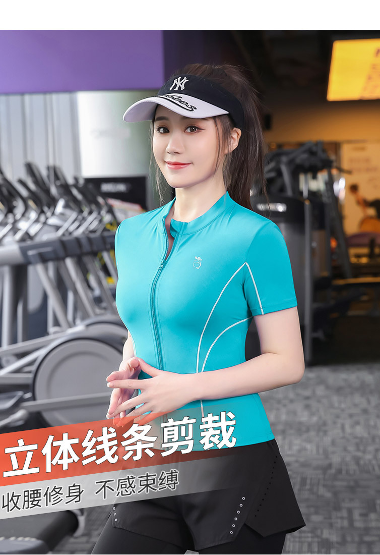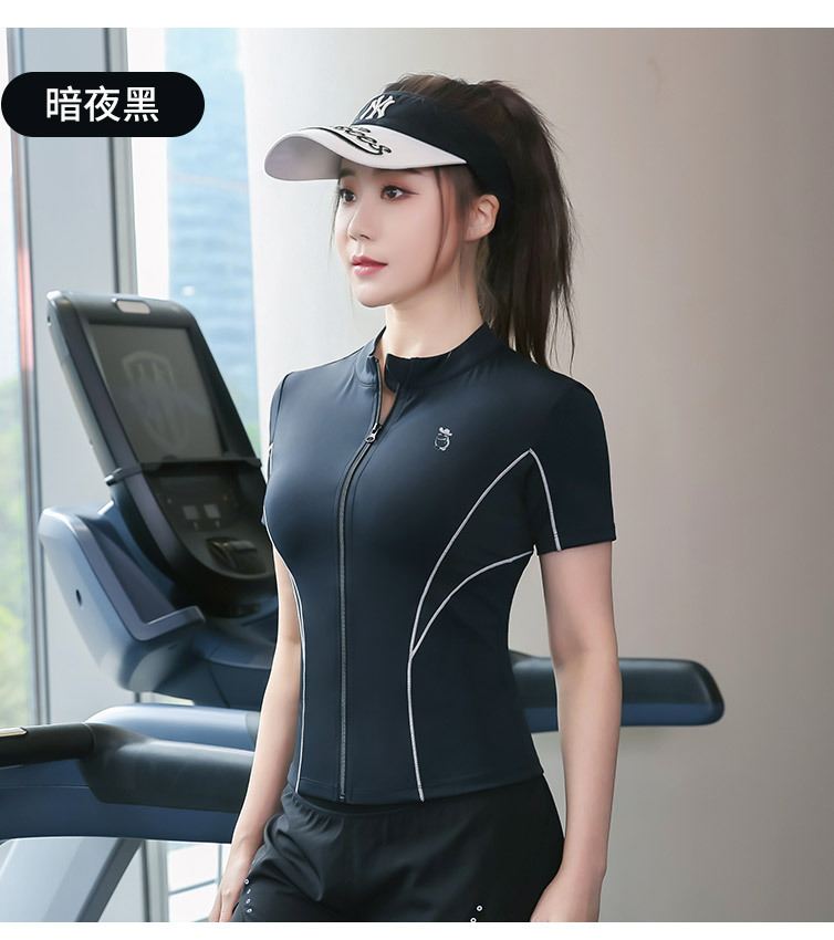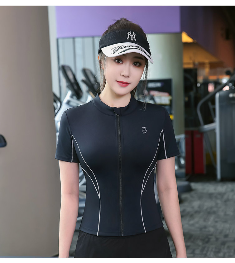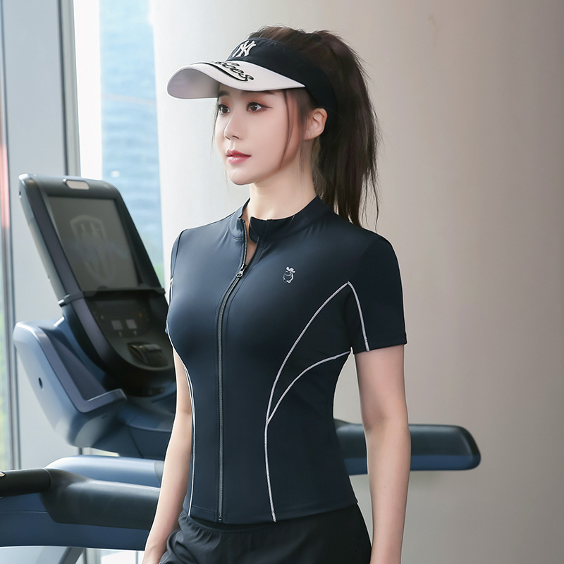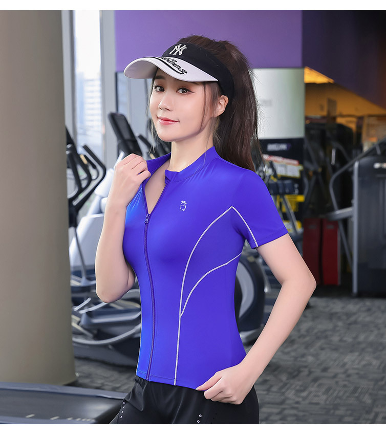 플러스 사이즈 여성 반팔 스포츠 티셔츠 여름 통통녀 빠른 건조 지퍼 요가 옷 최고 달리기 스트레치 꽉 옷