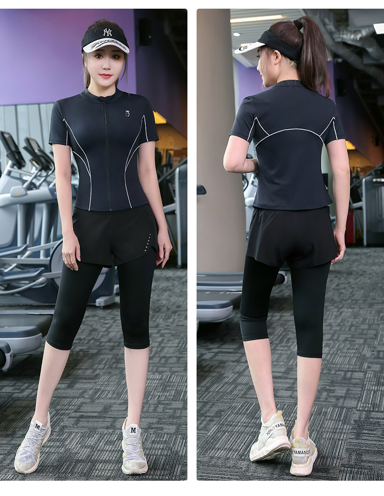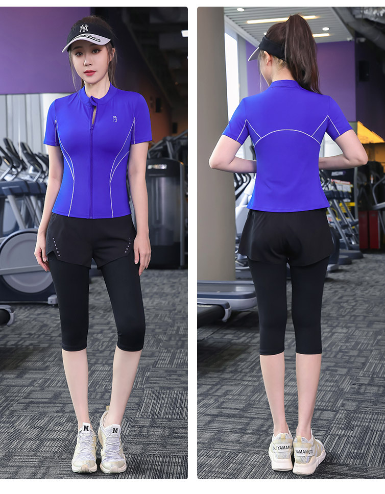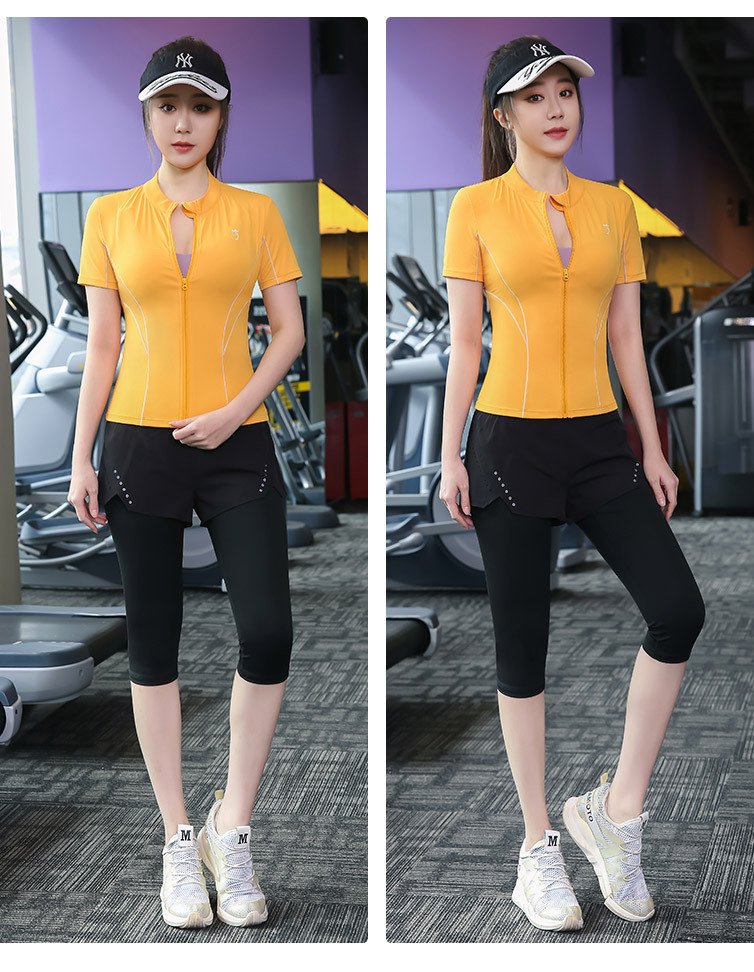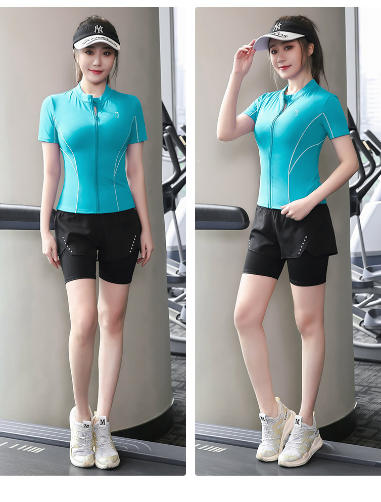 플러스 사이즈 여성 반팔 스포츠 티셔츠 여름 통통녀 빠른 건조 지퍼 요가 옷 최고 달리기 스트레치 꽉 옷