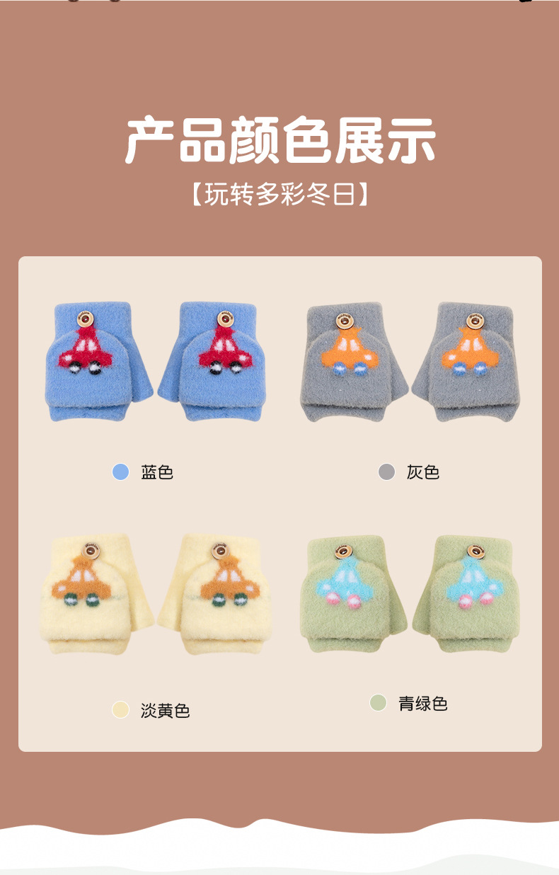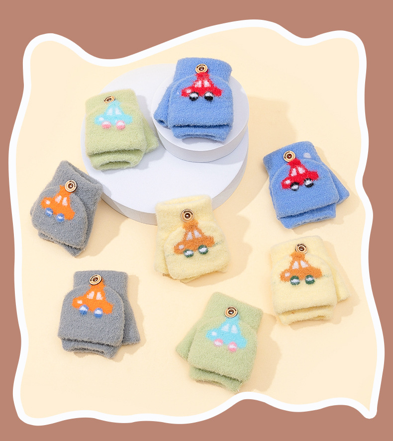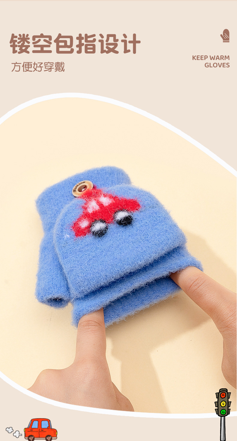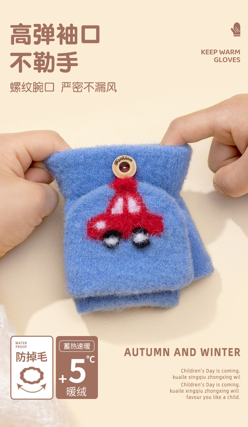 귀여운 겨울 어린이 장갑 1-3 아기 소년과 따뜻한 반 손가락 플립 니트 유치원