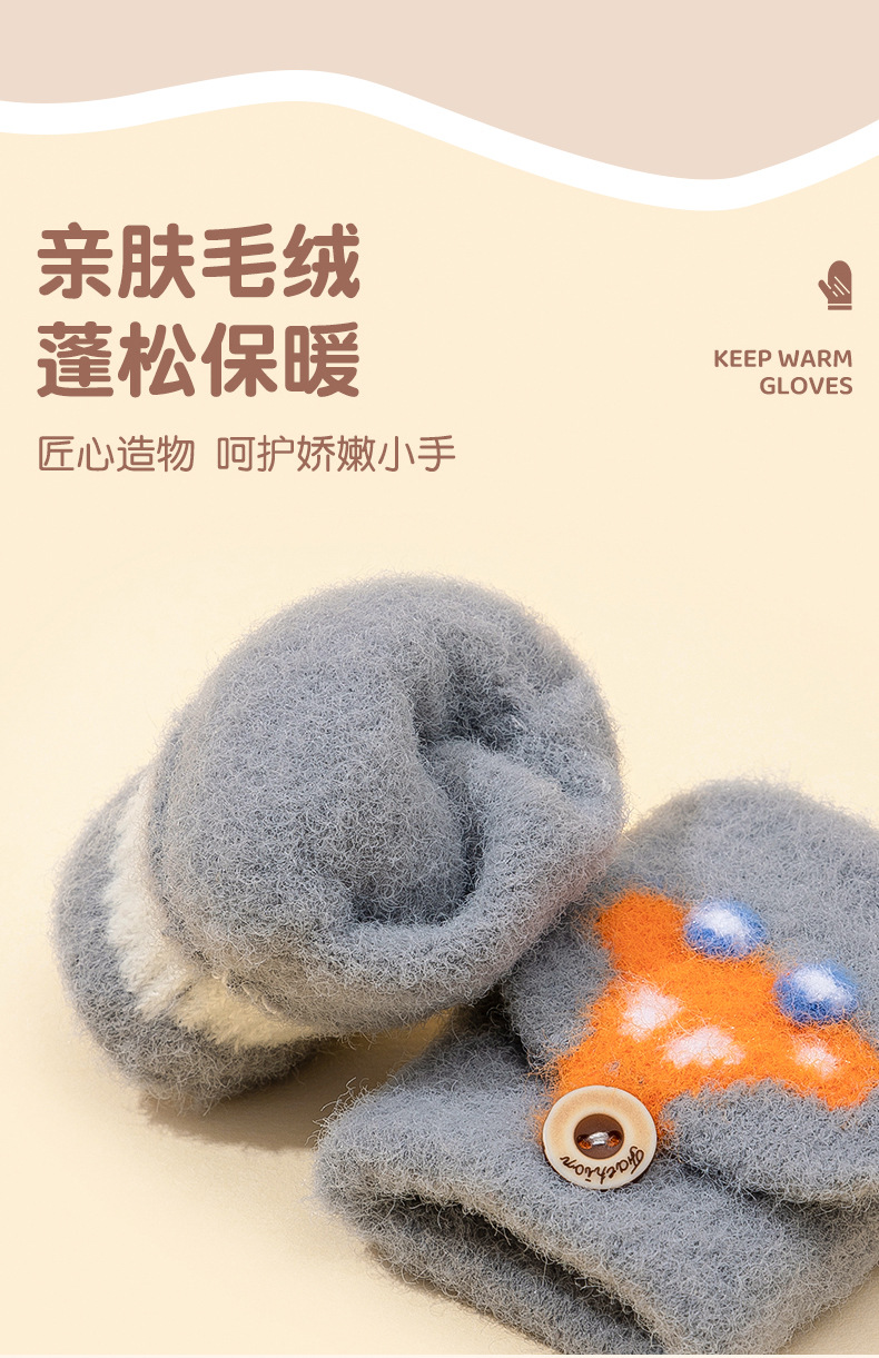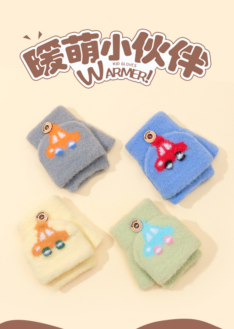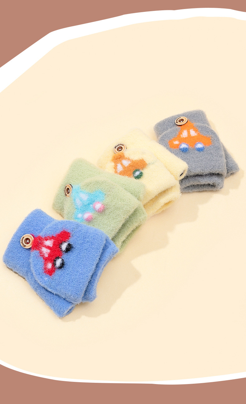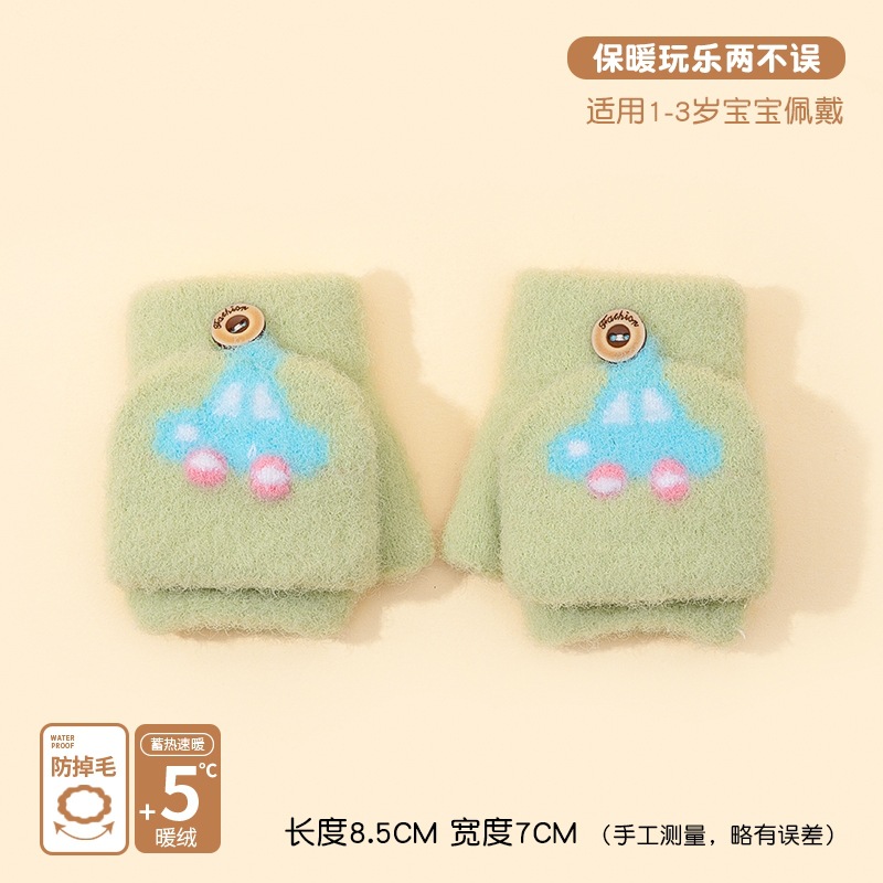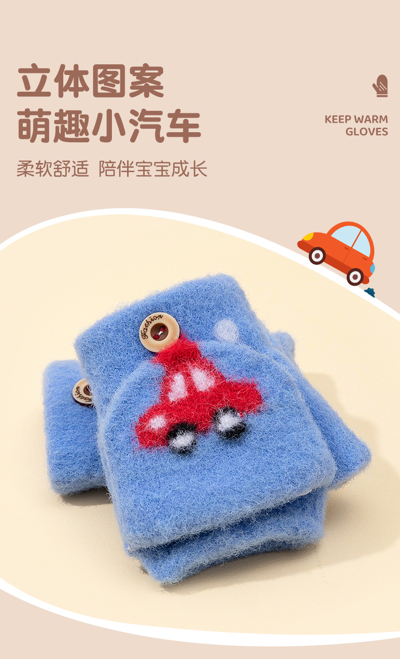 귀여운 겨울 어린이 장갑 1-3 아기 소년과 따뜻한 반 손가락 플립 니트 유치원