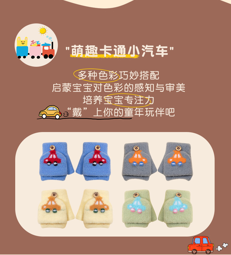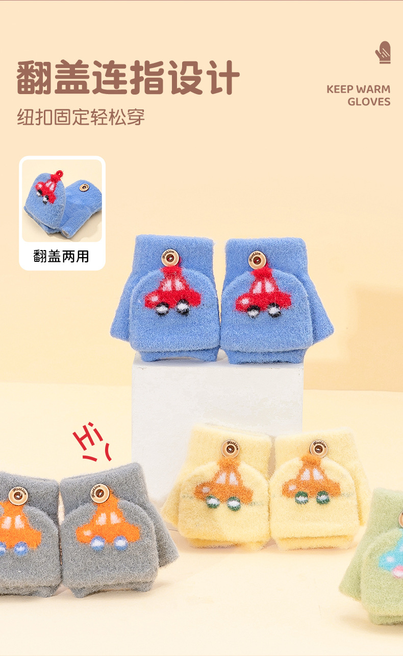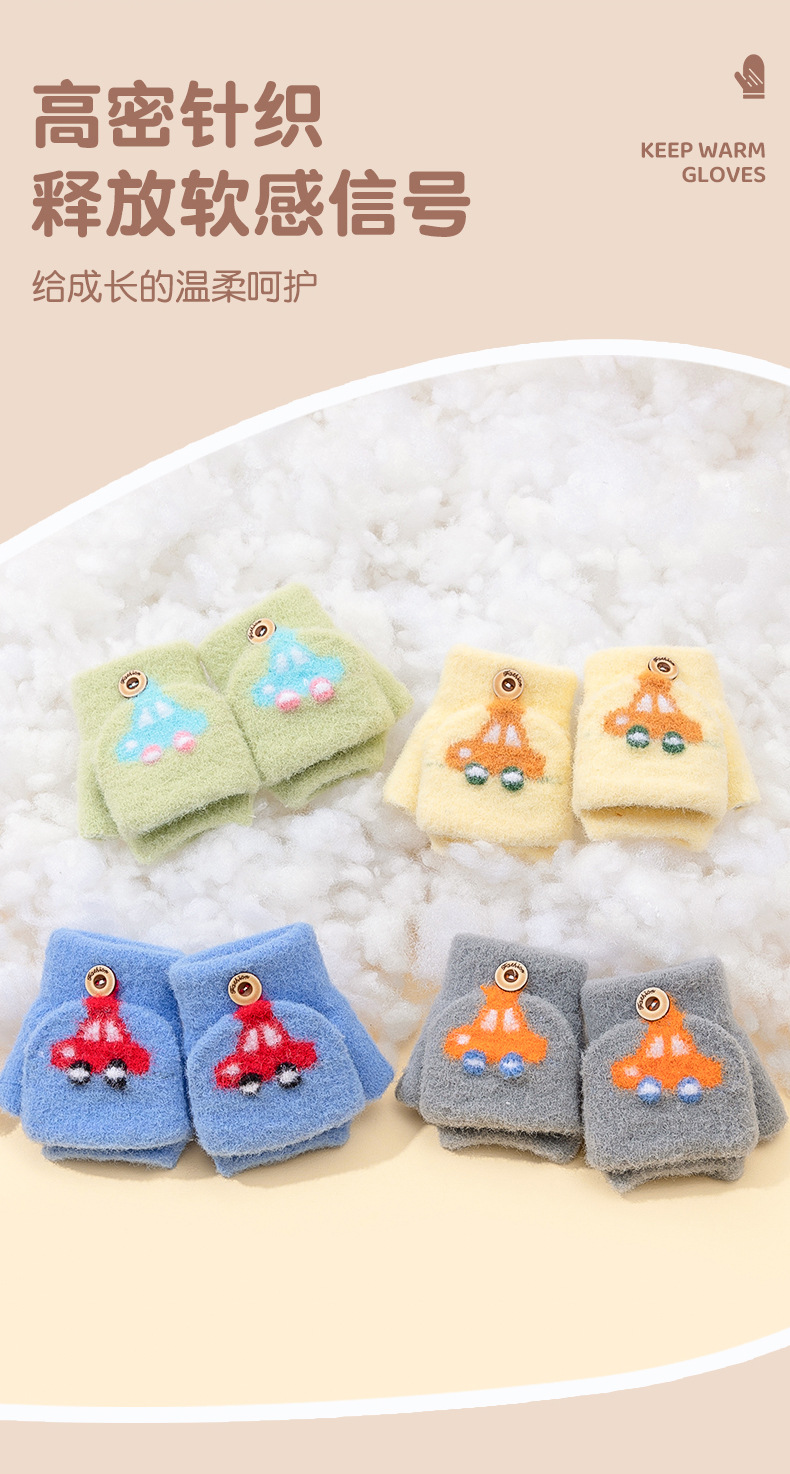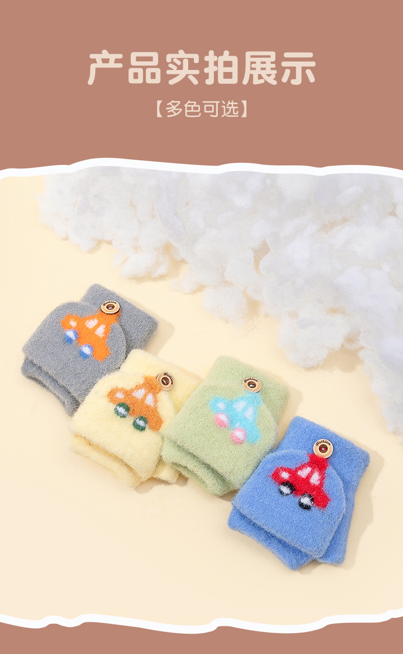귀여운 겨울 어린이 장갑 1-3 아기 소년과 따뜻한 반 손가락 플립 니트 유치원스토어 가기