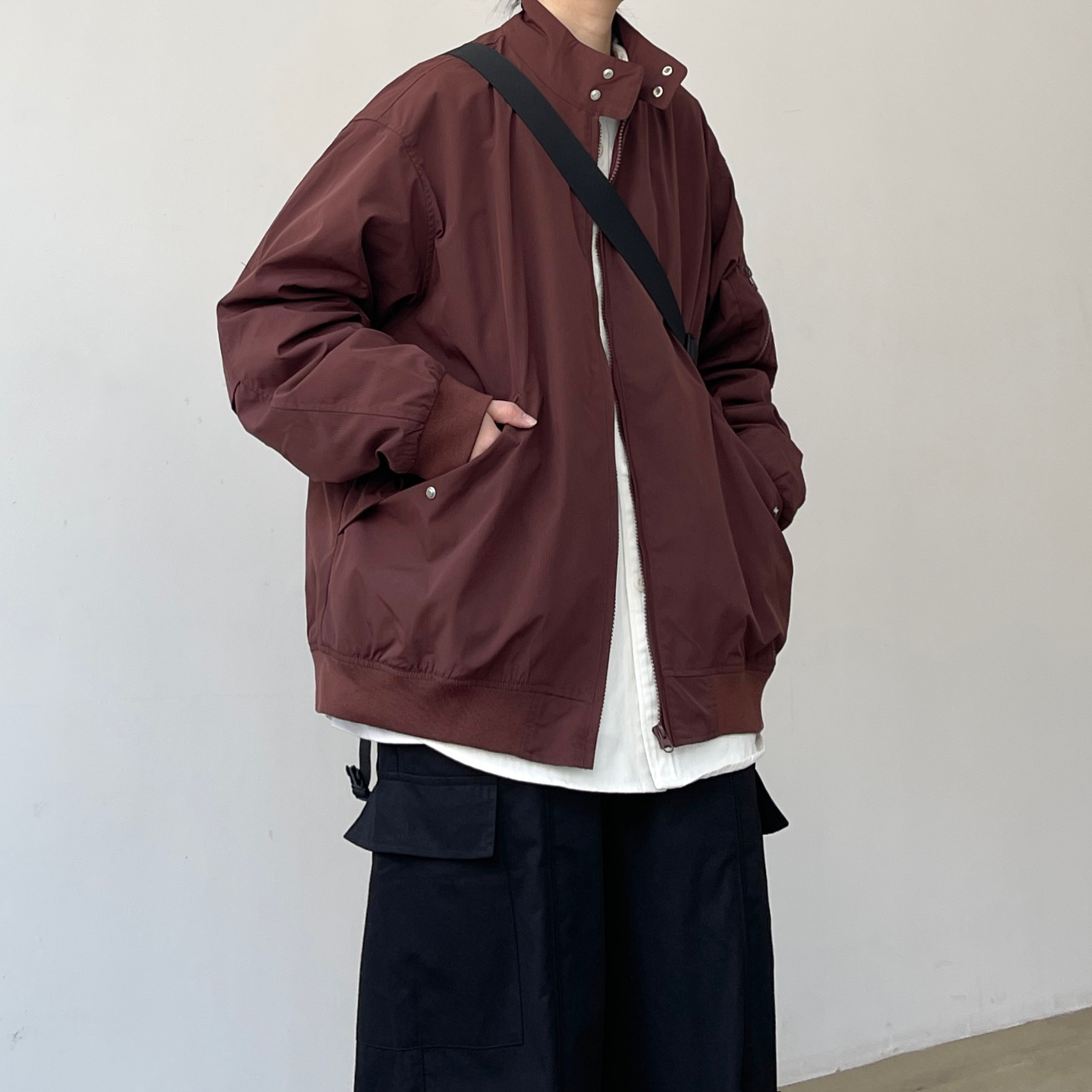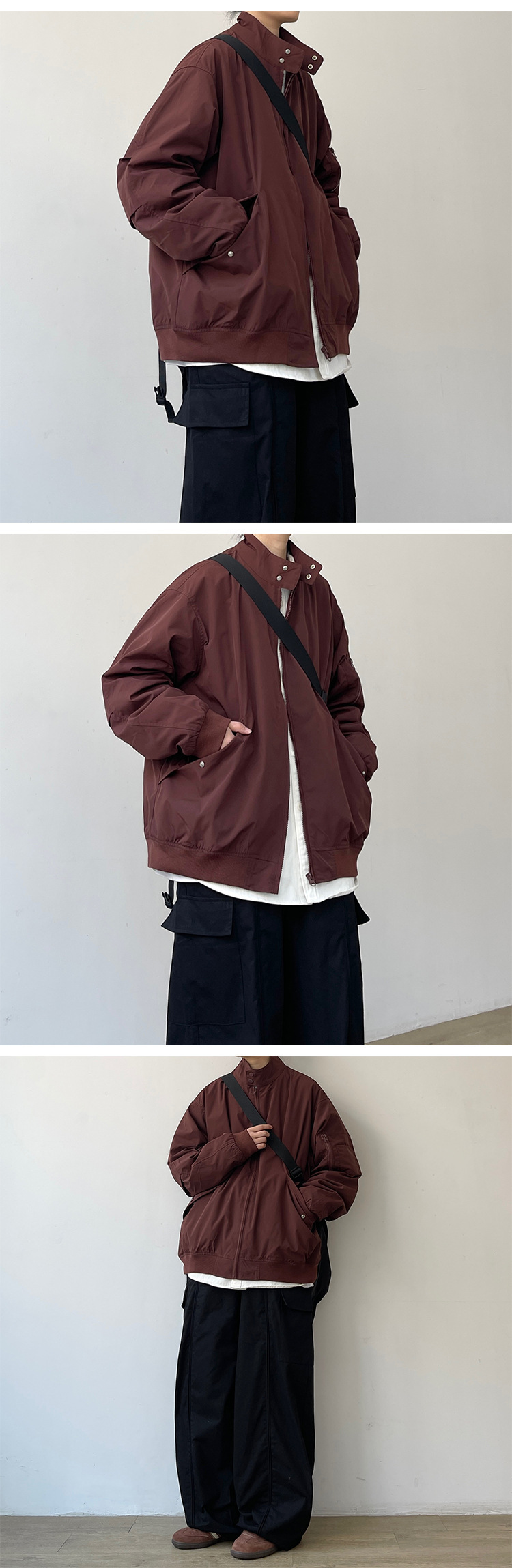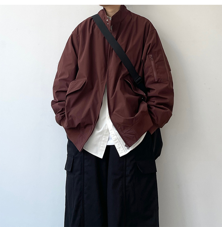 2024 일본식 레트로 봄과 가을 해링턴 폭격기 재킷 느슨한 빈티지 수직 칼라 툴링 재킷