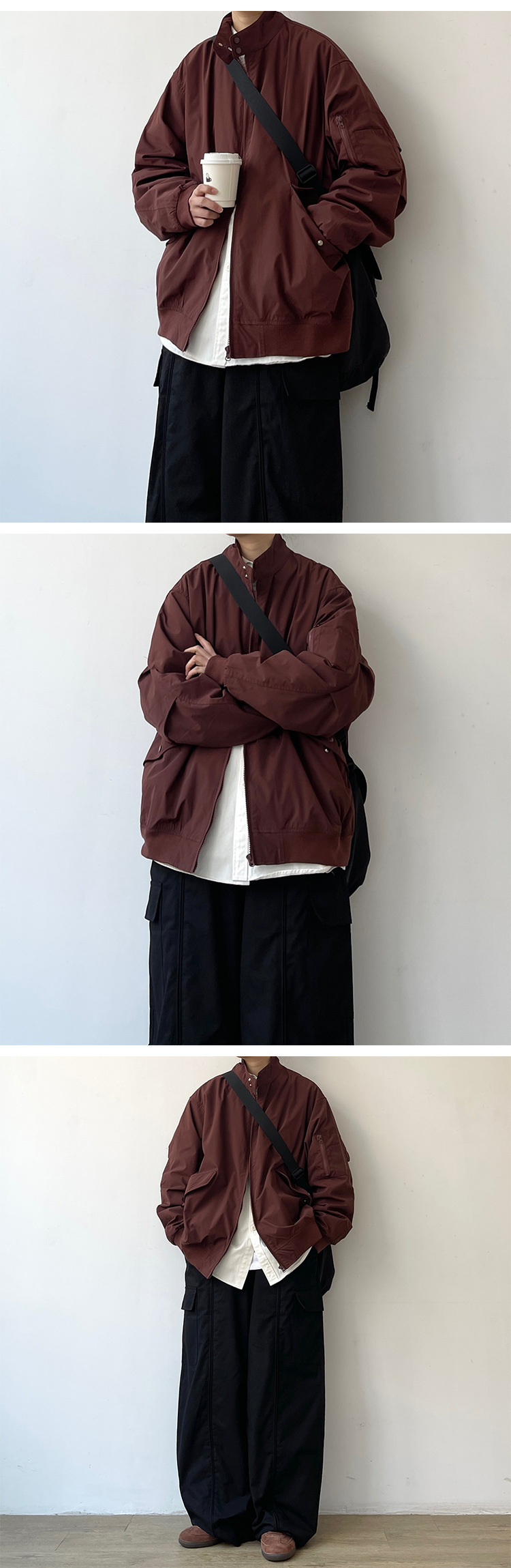 2024 일본식 레트로 봄과 가을 해링턴 폭격기 재킷 느슨한 빈티지 수직 칼라 툴링 재킷스토어 가기