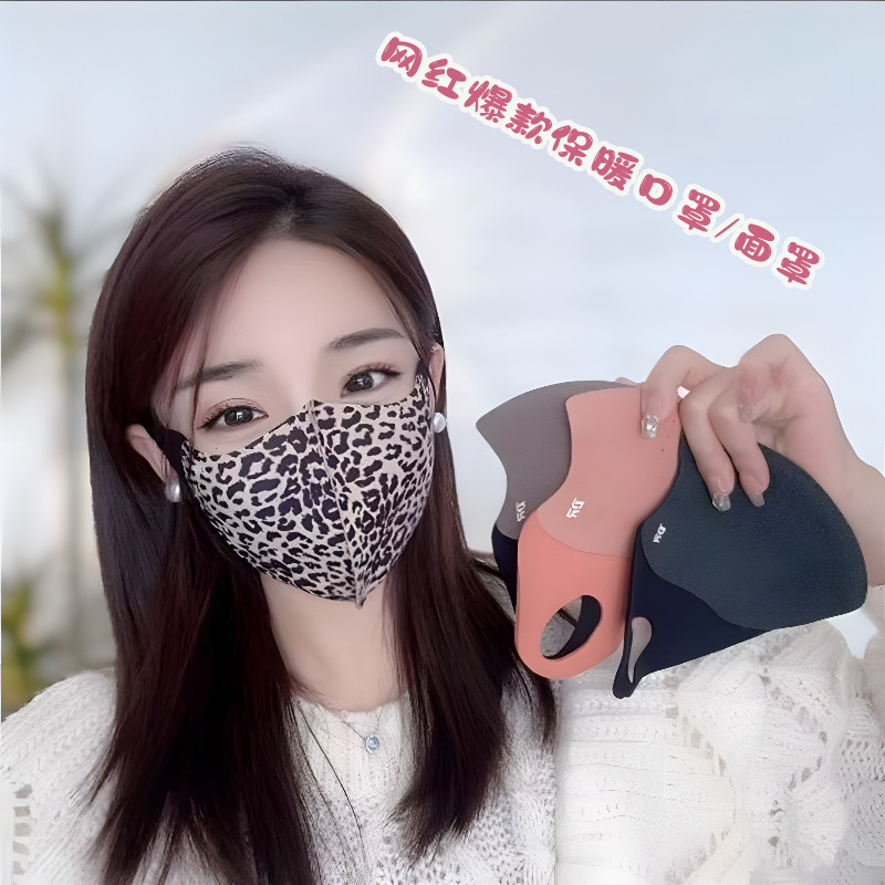 가을과 겨울 따뜻한 인터넷 인기있는 레오파드 무늬 마스크 여성의 3D 3 차원 추적없는 슬림-매일러드 바람 열 저장 잠금 온도 방풍 마스크스토어 가기