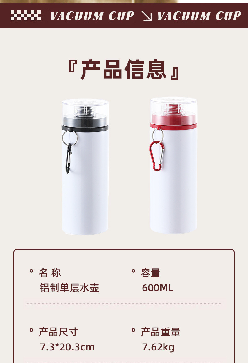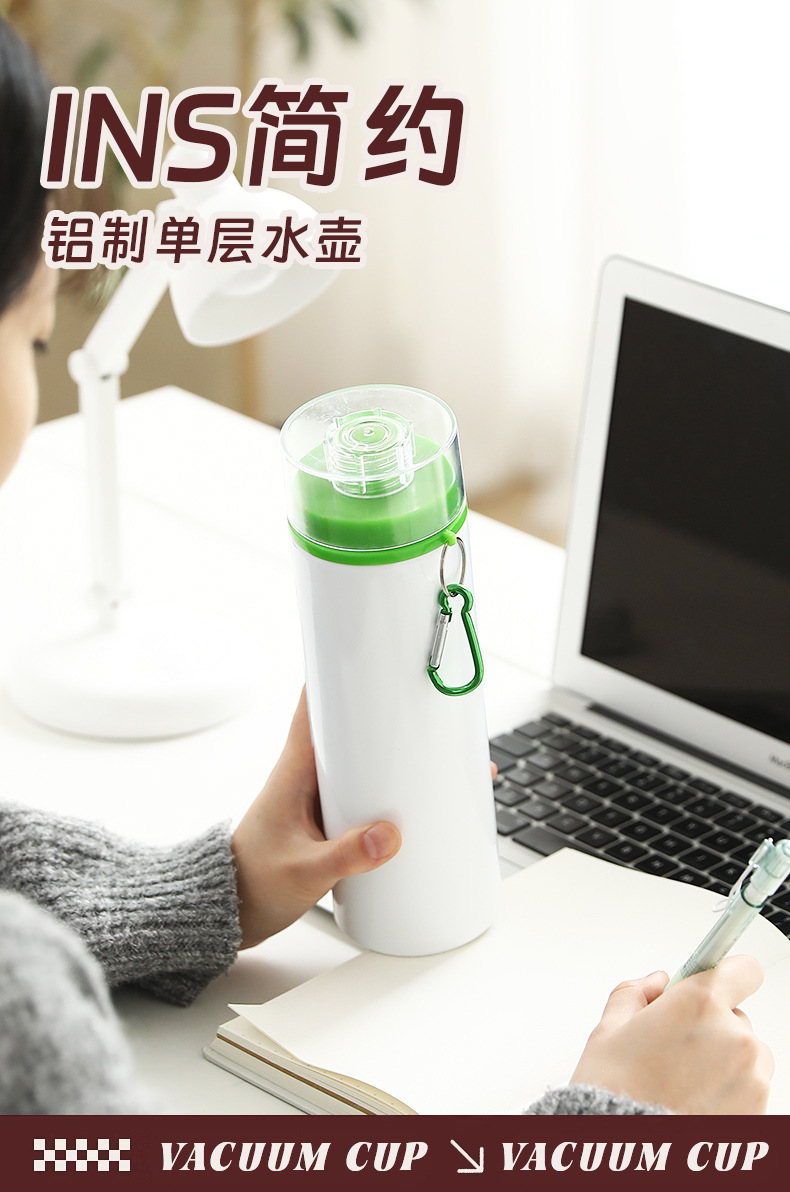 현대적이고 심플한 직선형 알루미늄 컵, 넓은 입구의 열전사 컵, 야외 등산, 스포츠 여행용 휴대용 스포츠 물병
