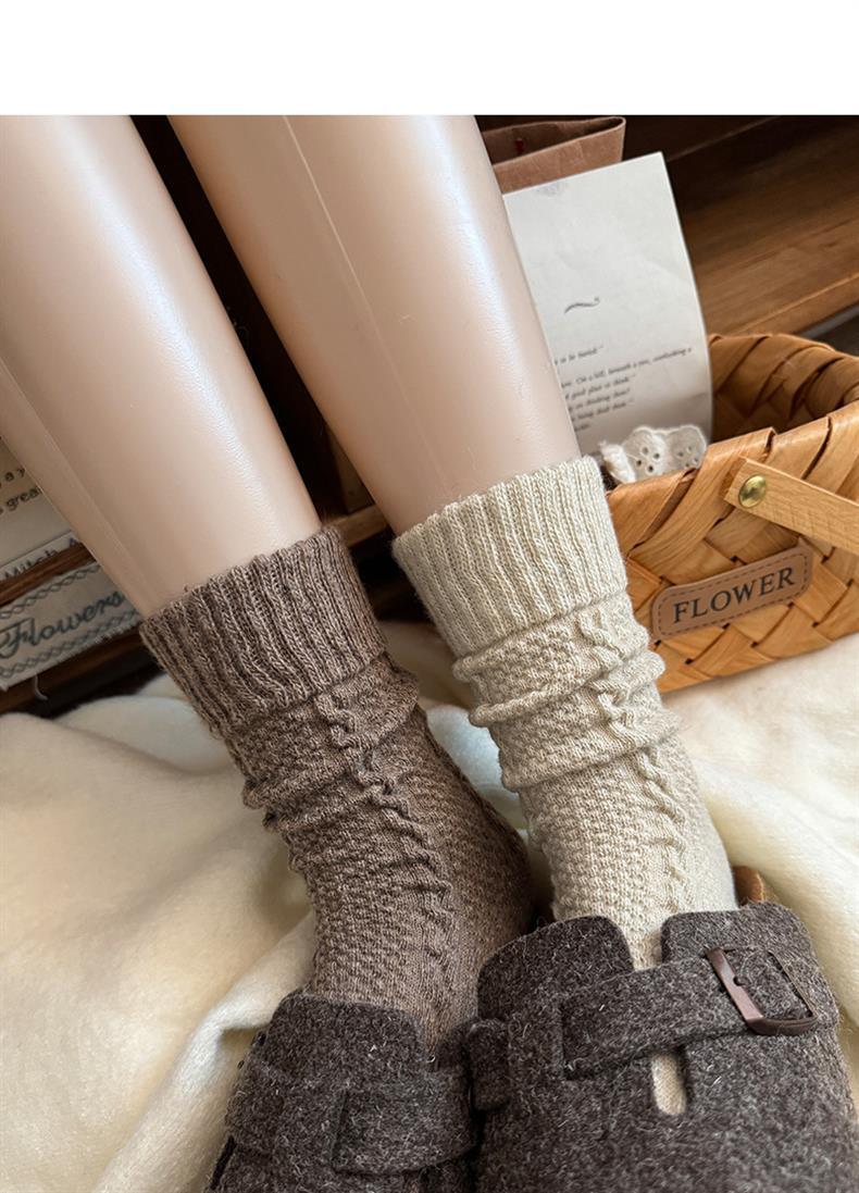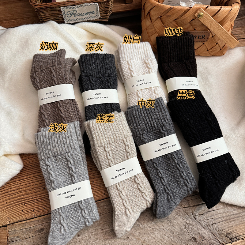 양모 양말 여성용 가을과 겨울 따뜻한 트위스트 양말 기모 두꺼운 스택 겨울 달 양말 바닥 양말스토어 가기