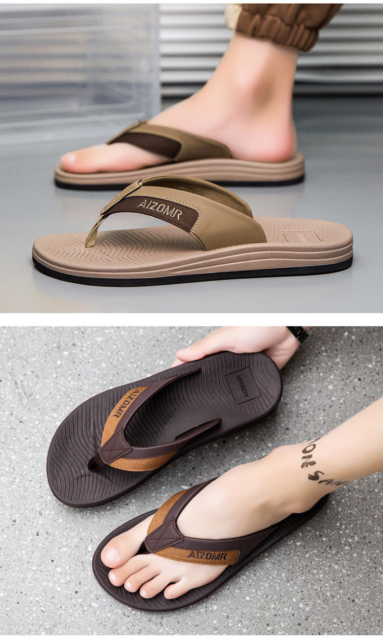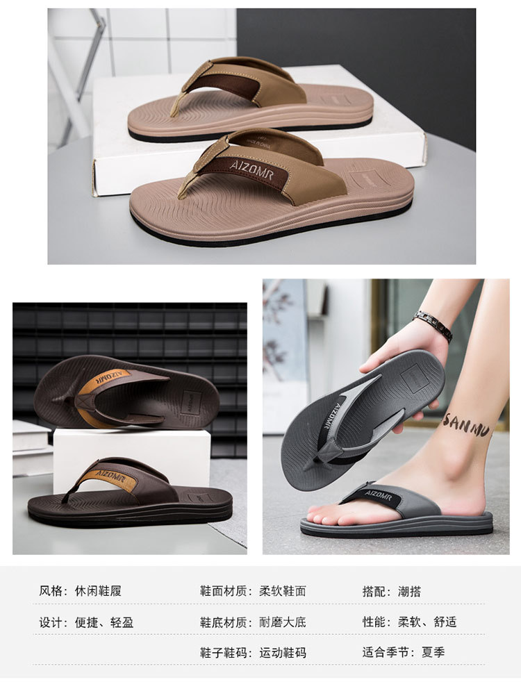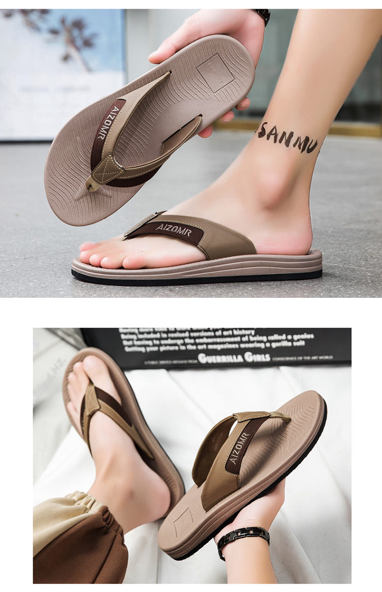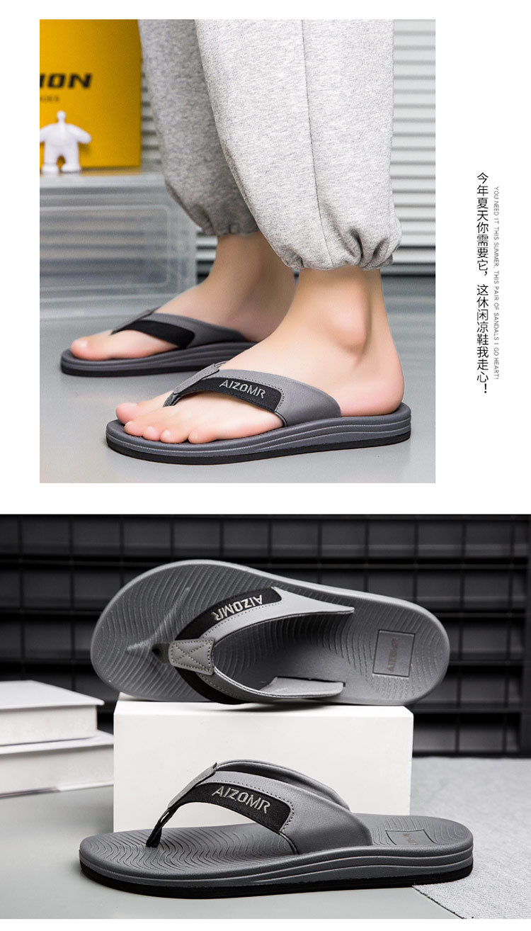 Chuanglong Cross-border 하이 엔드 센스 PU 가죽 얼굴 플립 플롭 남성 스포츠 레저 비치 야외 미끄럼 방지 외곽복 플립 플롭스토어 가기