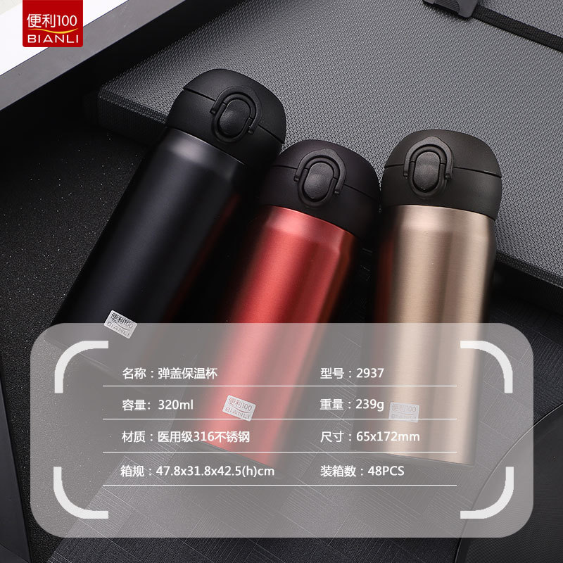 클래식 비즈니스 티 컵 316L 스테인레스 스틸 바운스 뚜껑 컵 누출 방지 휴대용 간단한 경량 직접 마시는 컵스토어 가기