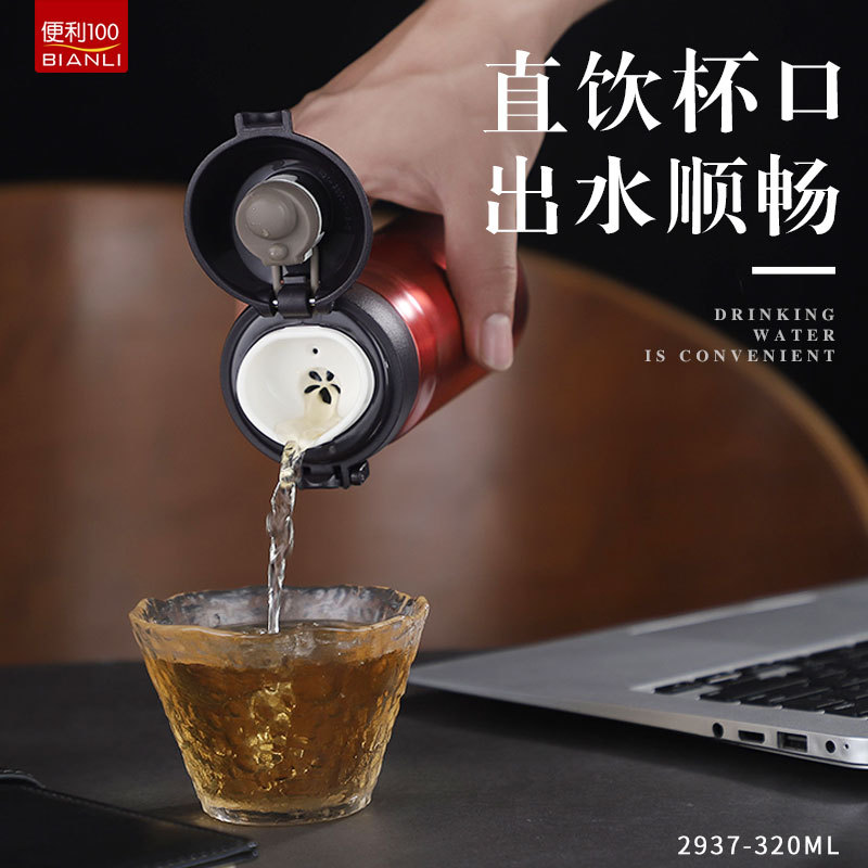 클래식 비즈니스 티 컵 316L 스테인레스 스틸 바운스 뚜껑 컵 누출 방지 휴대용 간단한 경량 직접 마시는 컵