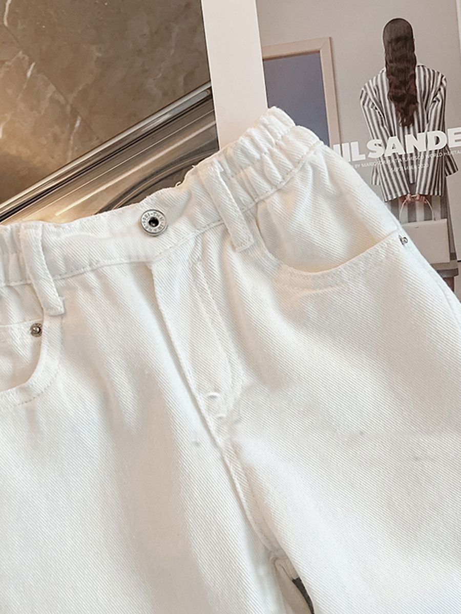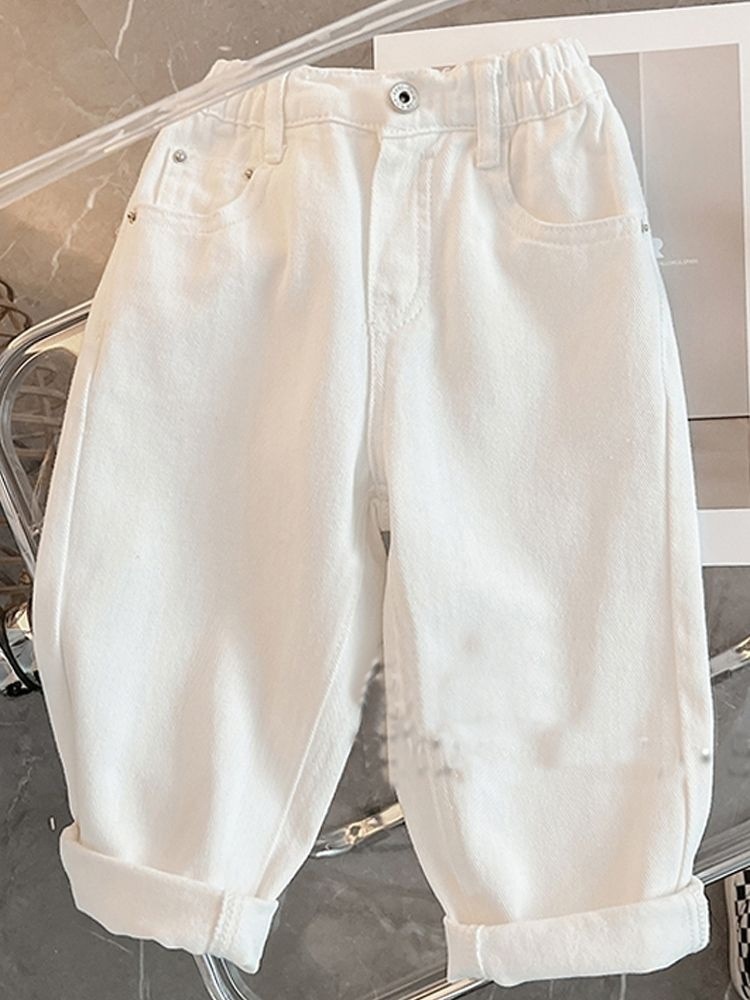 2026년 신상 한국 아동복 남아 여아 화이트 데님 팬츠 어린이 봄 다용도 패션 바지 여아 긴바지