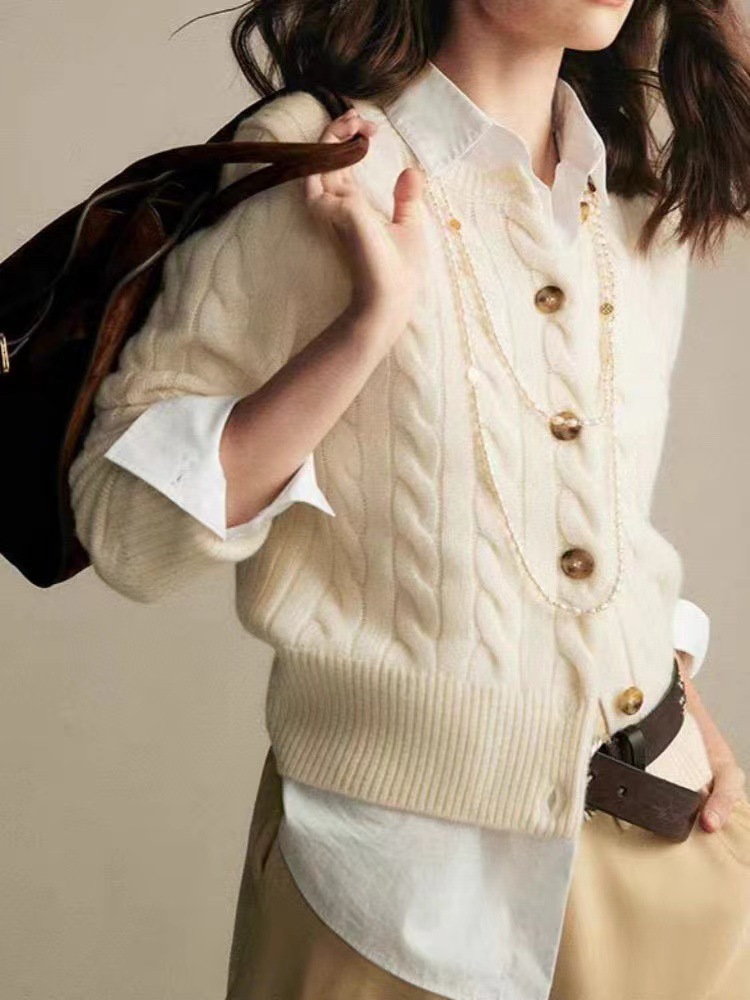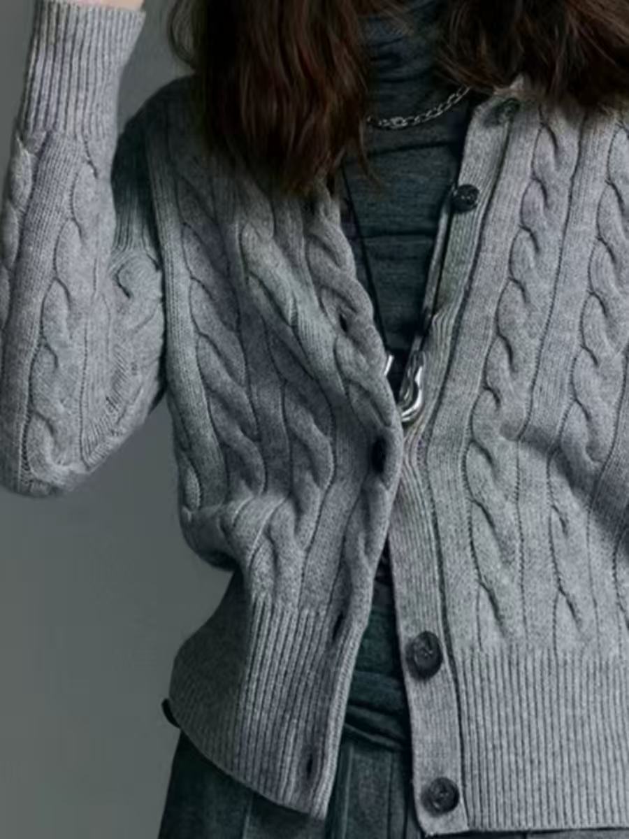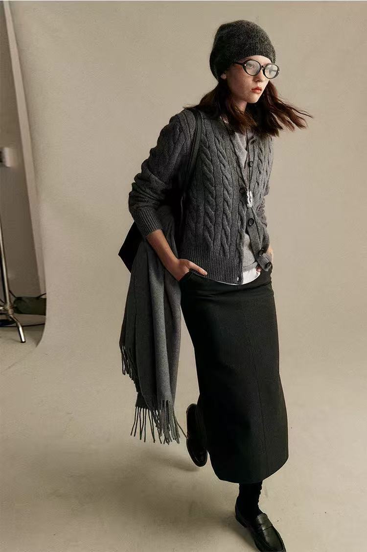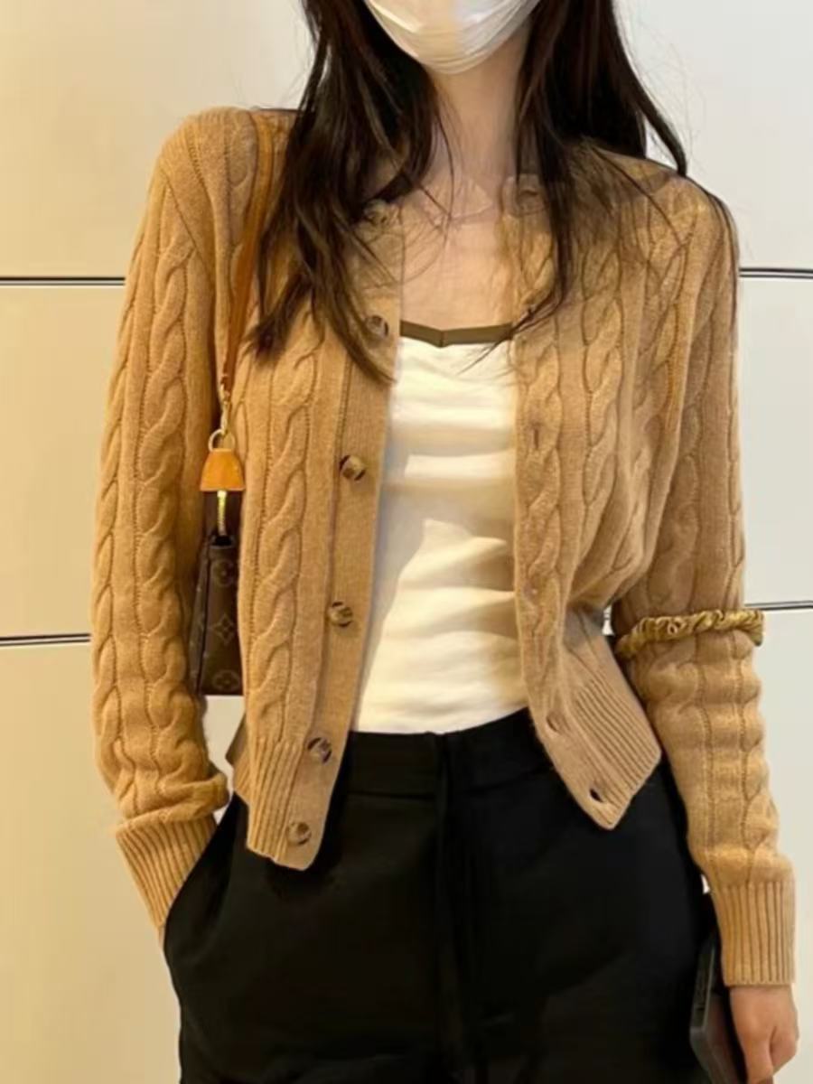 이지아! 올드 Qian Feng 가을과 겨울 새로운 트위스트 퓨어 울 카디건 여성 라운드 넥 두꺼운 빈티지 스웨터 자수 재킷