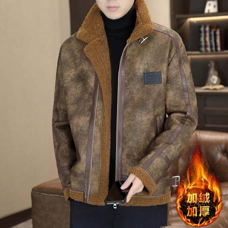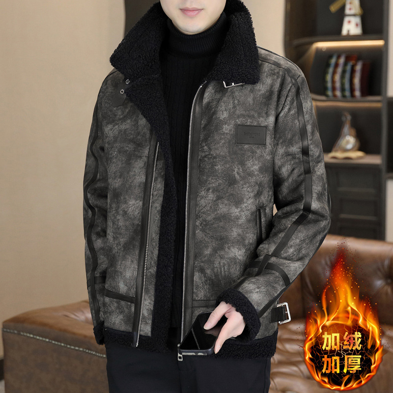 남성용 가죽 자켓 가을 및 겨울 기모 가죽 자켓 플라잉 바이커 의류 한국식 슬림핏 캐주얼 따뜻한 중년 및 청소년스토어 가기