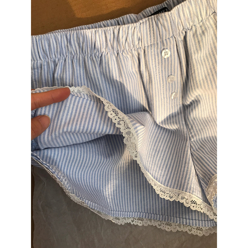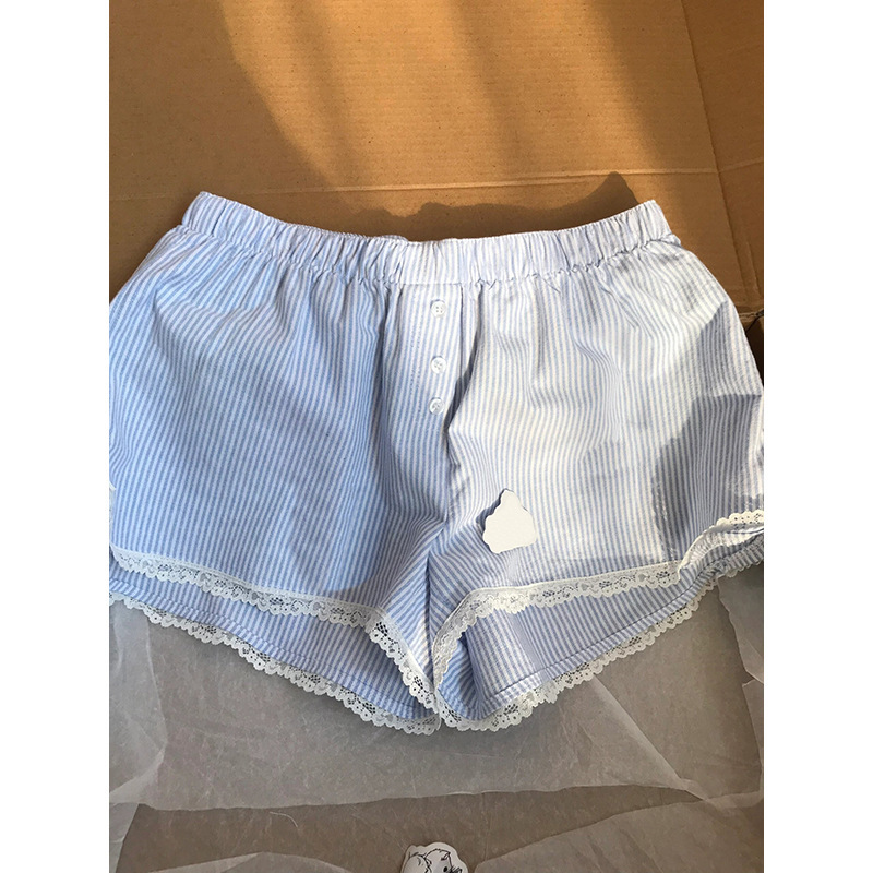 2024 봄 여름 하이웨이스트 홈웨어 팬츠 캐주얼 팬츠 외출복 레이스 트림 잠옷 반바지 여성용 다리길이 연출 초미니스토어 가기