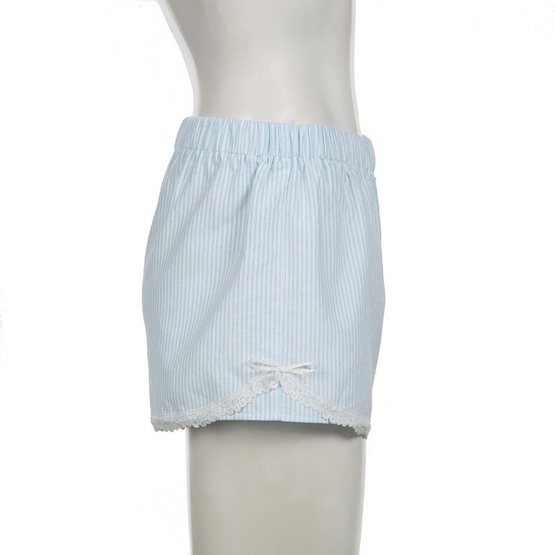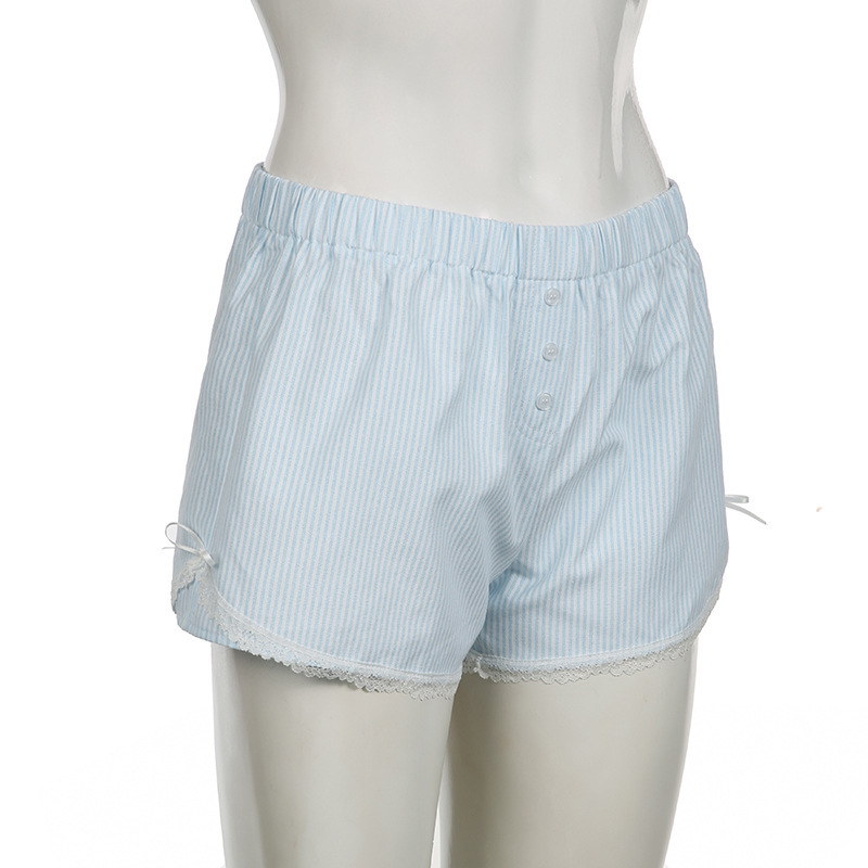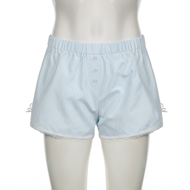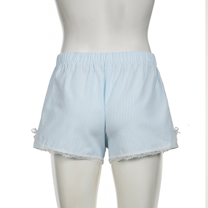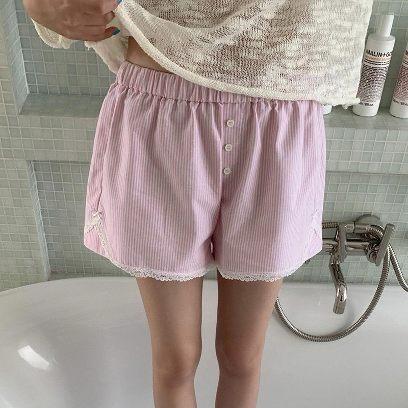 2024 봄 여름 하이웨이스트 홈웨어 팬츠 캐주얼 팬츠 외출복 레이스 트림 잠옷 반바지 여성용 다리길이 연출 초미니