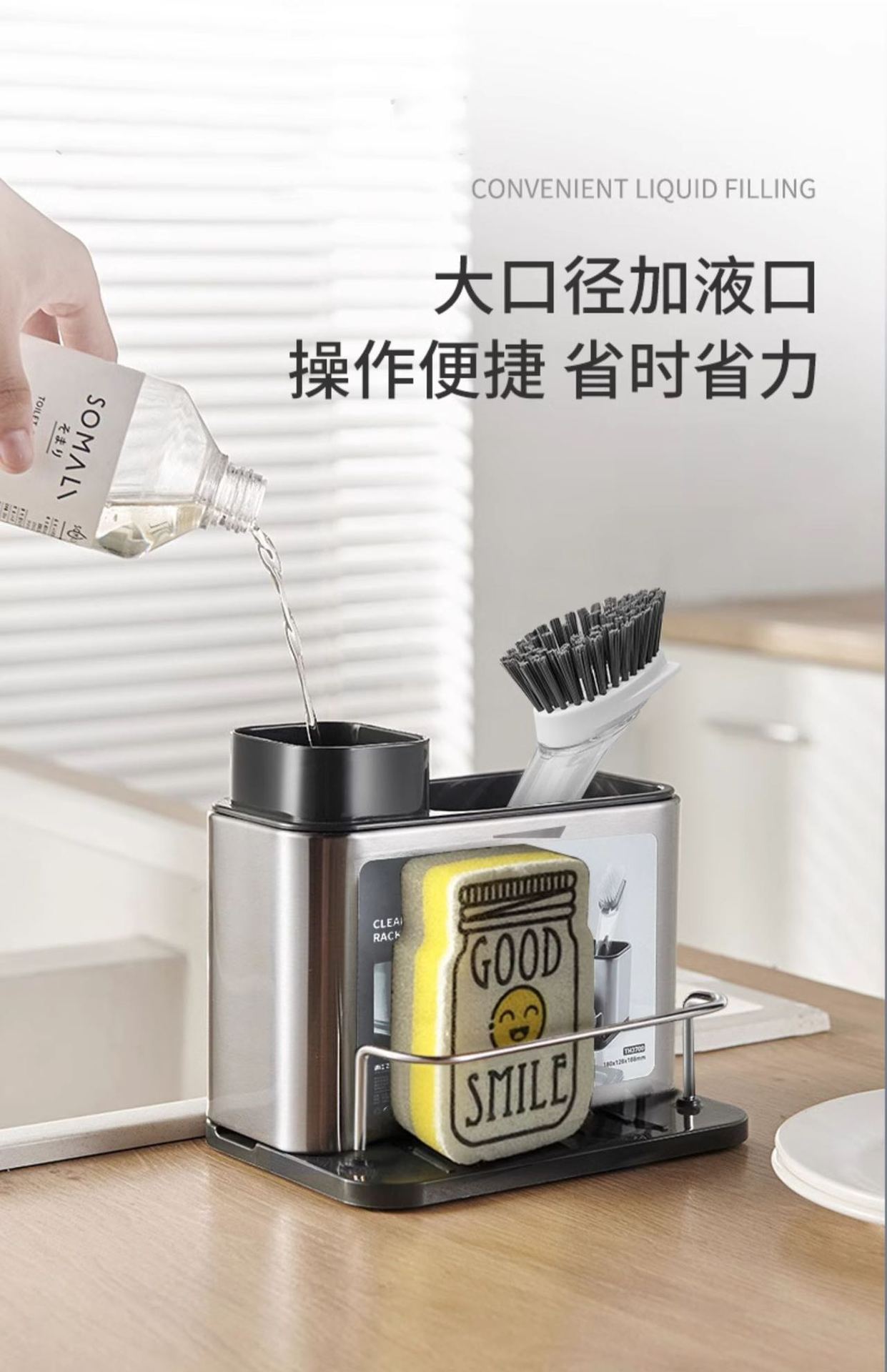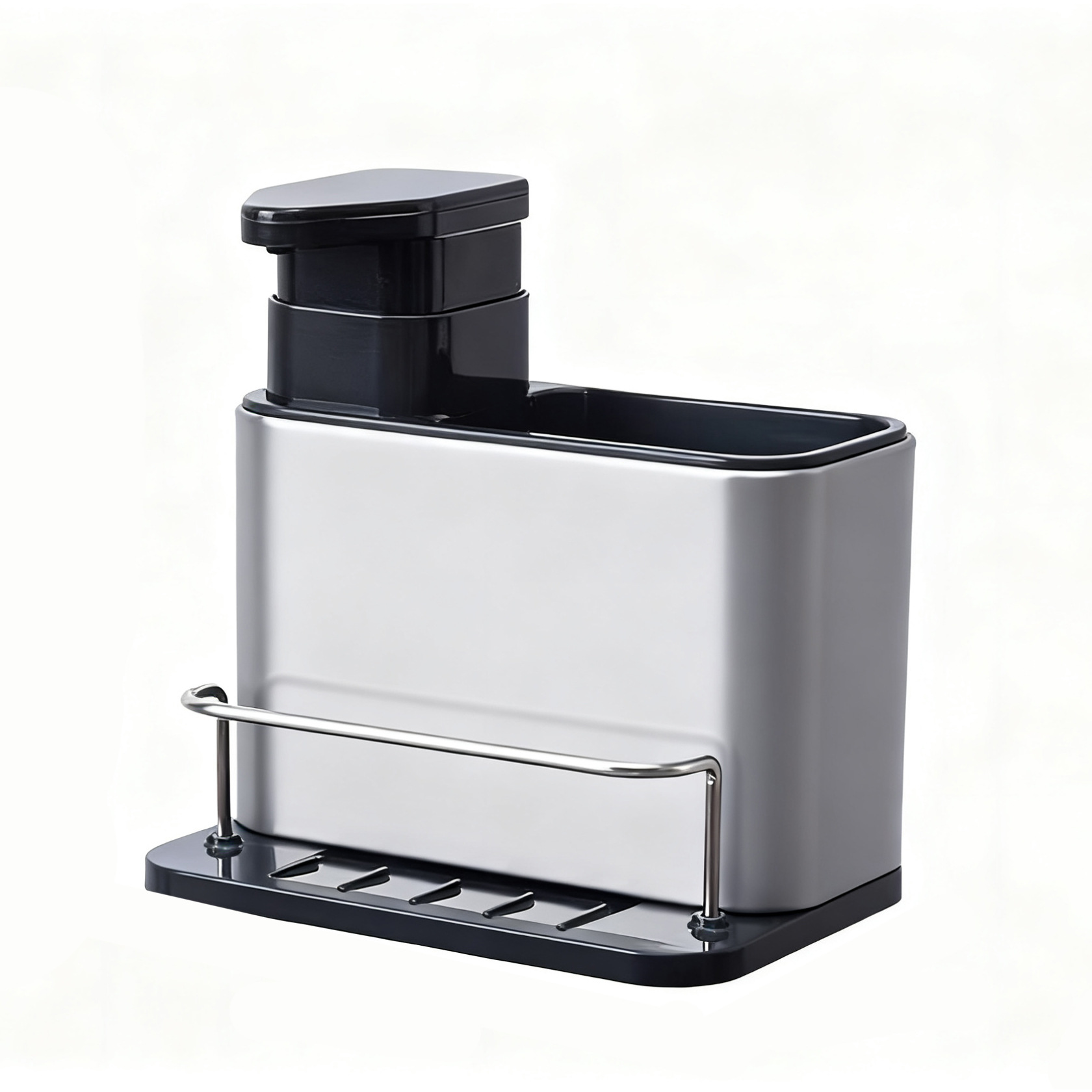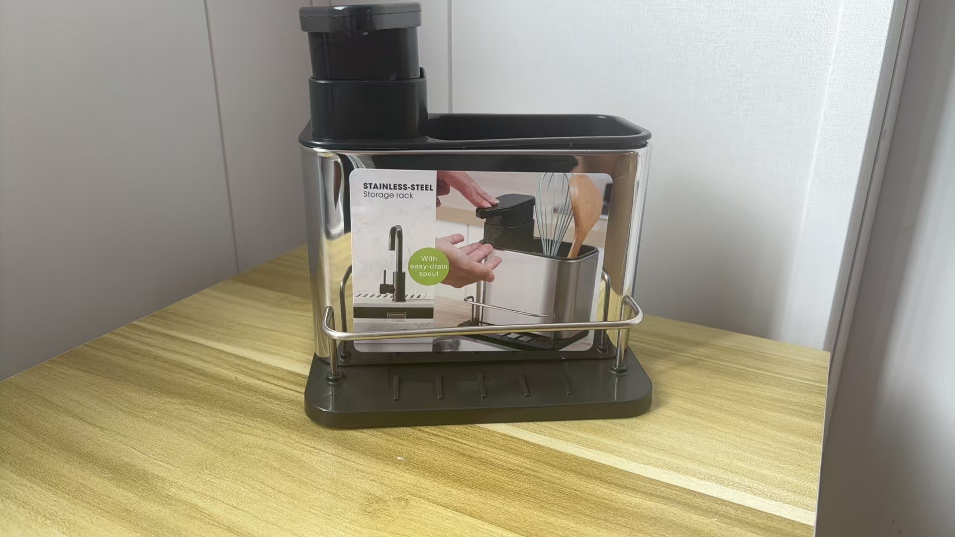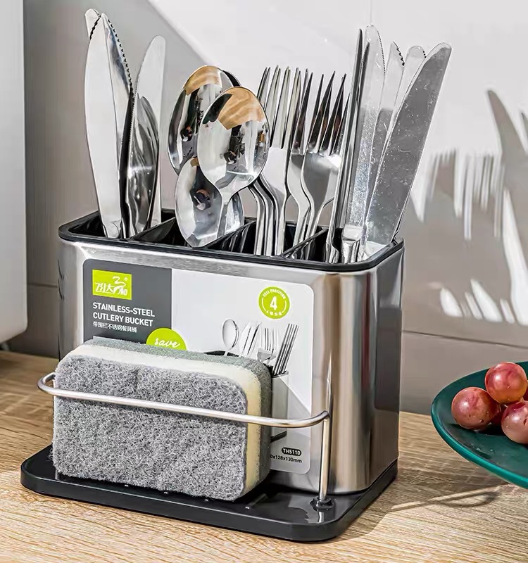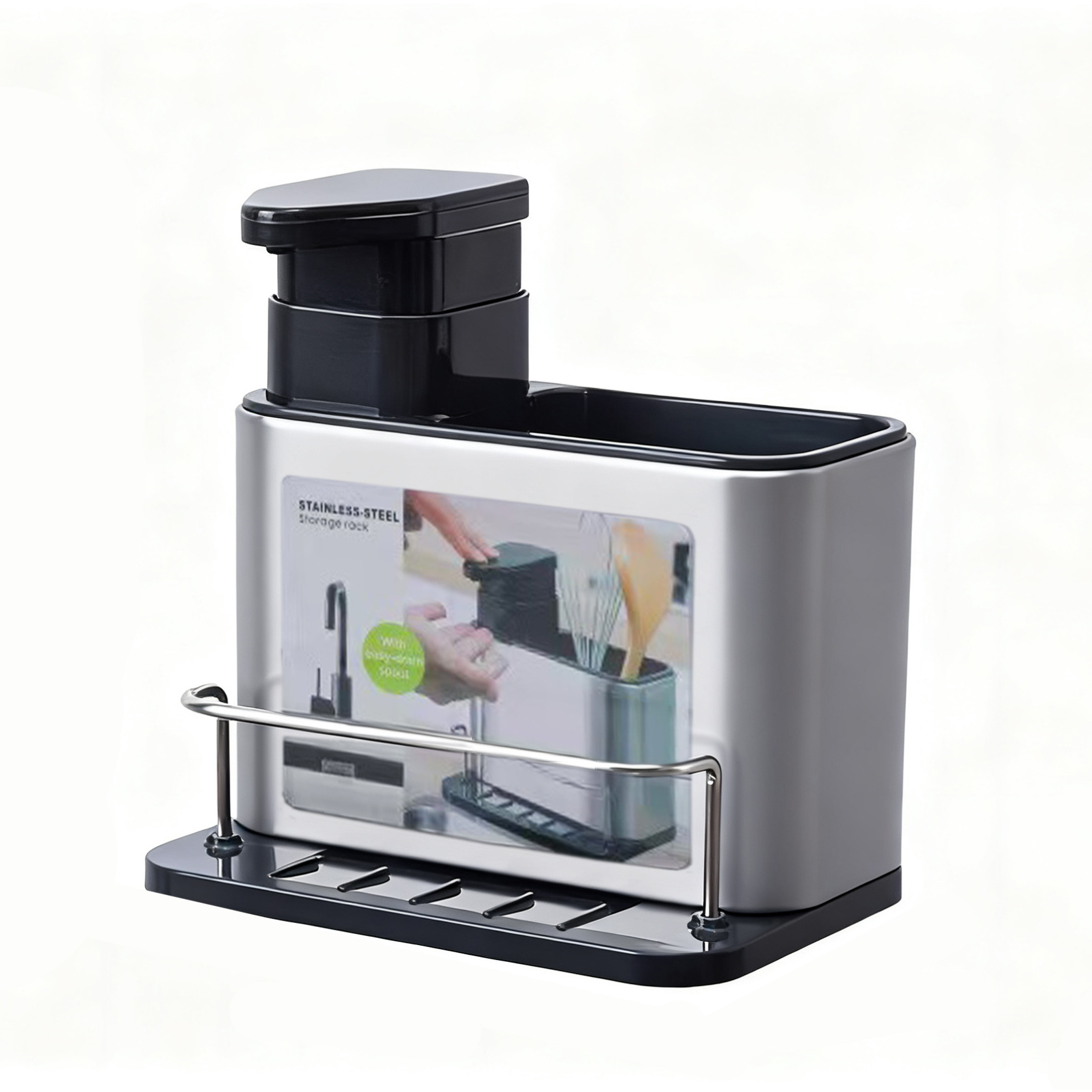 주방 수납 선반 3-in-1 스테인리스 설거지 스펀지 물빠짐대, 스틸 수세미, 주방세제 용기 보관함