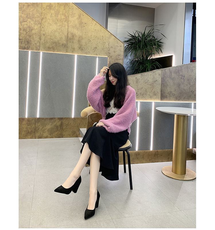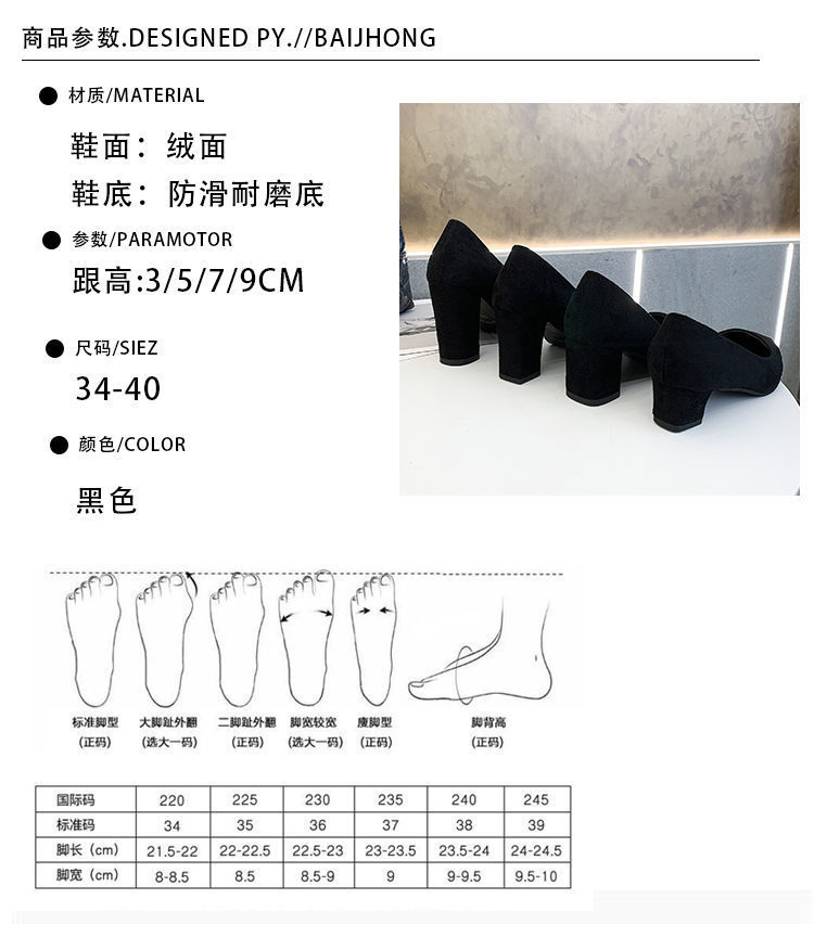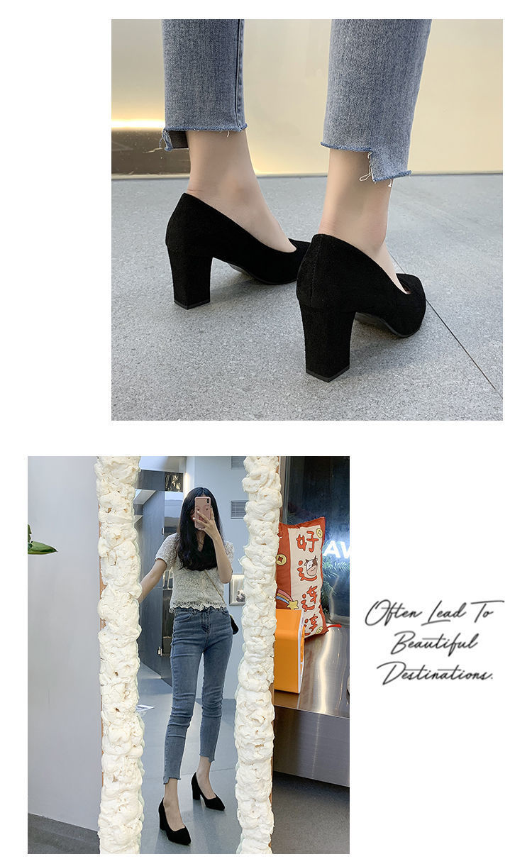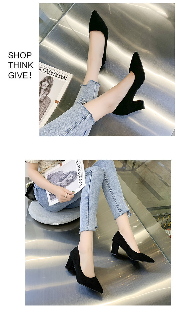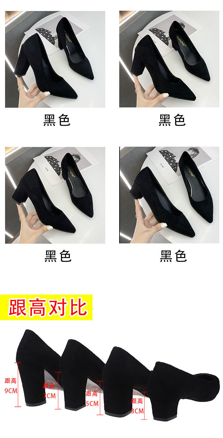 Z 프렌치 스타일 여성용 하이힐 두꺼운 굽 2024 가을 겨울 신상 뾰족한 발가락 얕은 입 작은 향기로운 스웨이드 신발스토어 가기