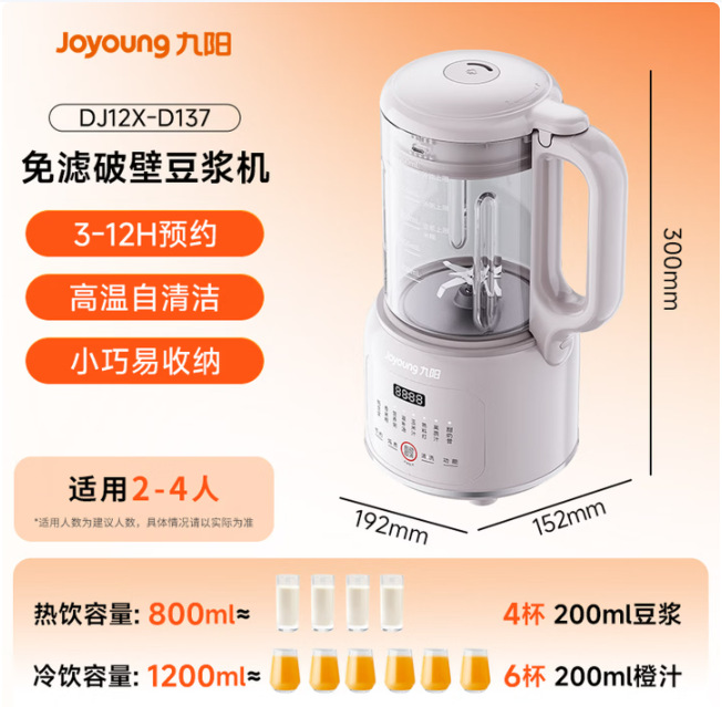 Jiuyang 깨진 두유 기계 가구 완전 자동 1L 작은 다기능 필터-무료 끓는 DJ10X-D245스토어 가기