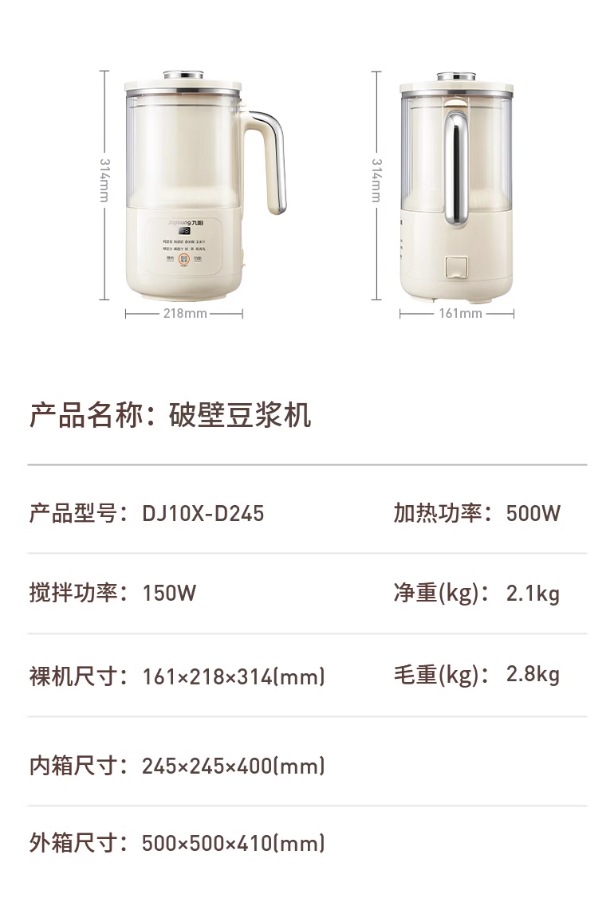 Jiuyang 깨진 두유 기계 가구 완전 자동 1L 작은 다기능 필터-무료 끓는 DJ10X-D245