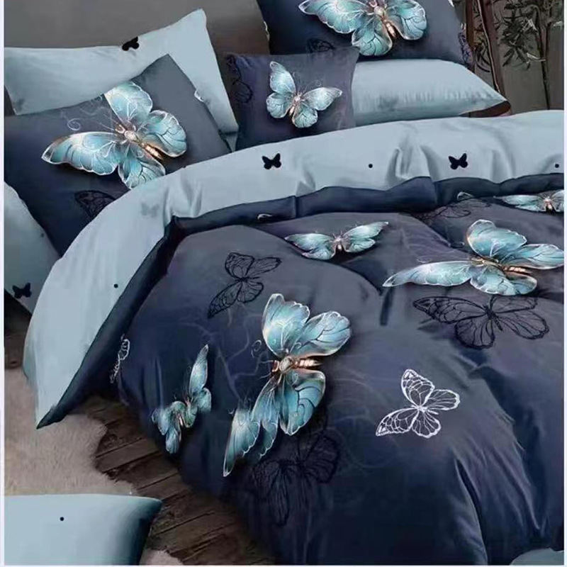 프린트 나비무늬 침구 4종 세트, 멀티피스 침대 시트, 이불 커버, 기모 침대 시트, 도매 러시아식 침대 시트