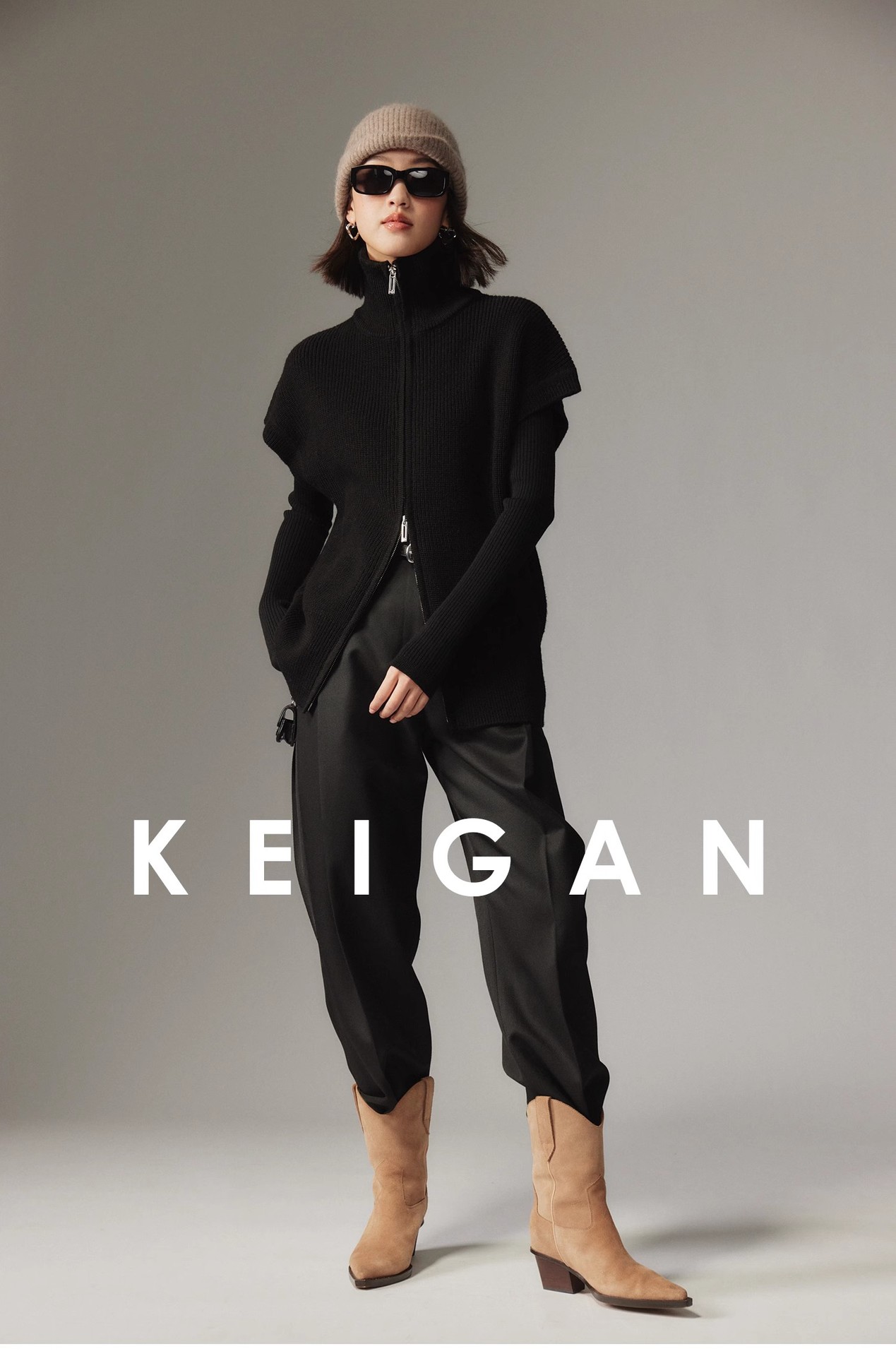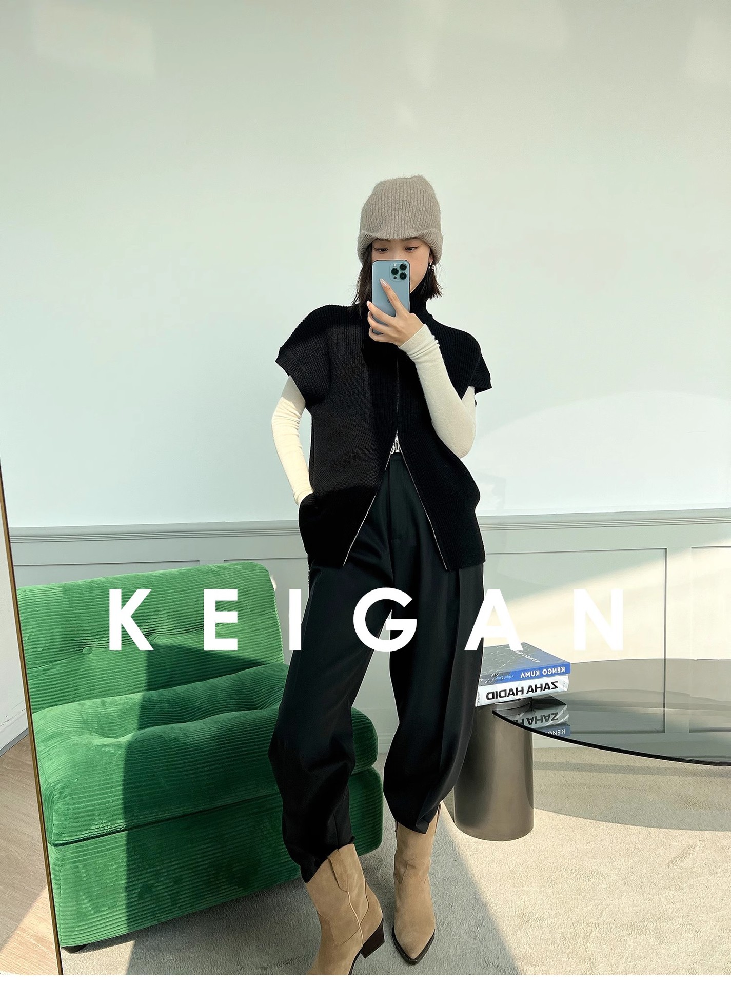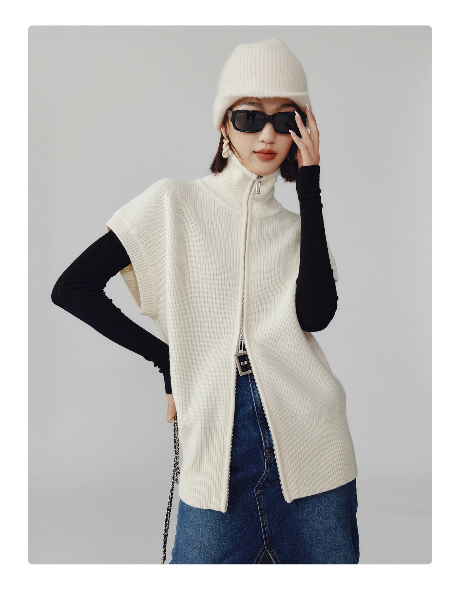 여성용 터틀넥 니트 조끼 양모 루즈 아우터, 세련된 조끼 착용 민소매 더블 지퍼 스웨터