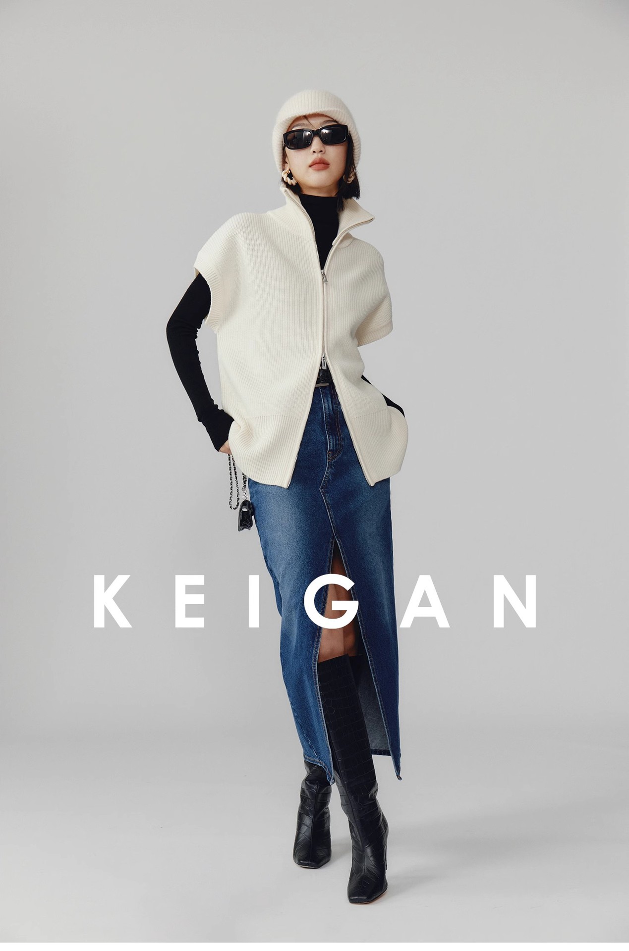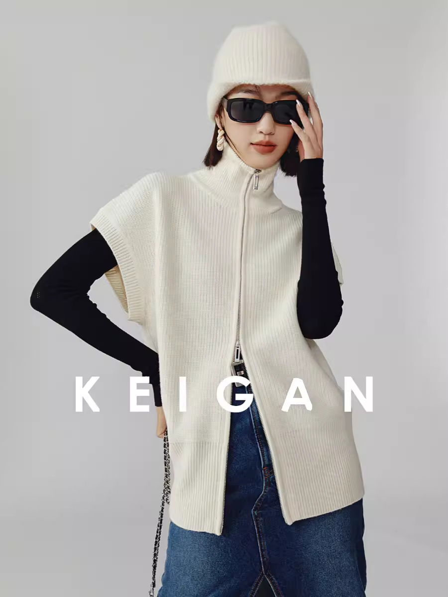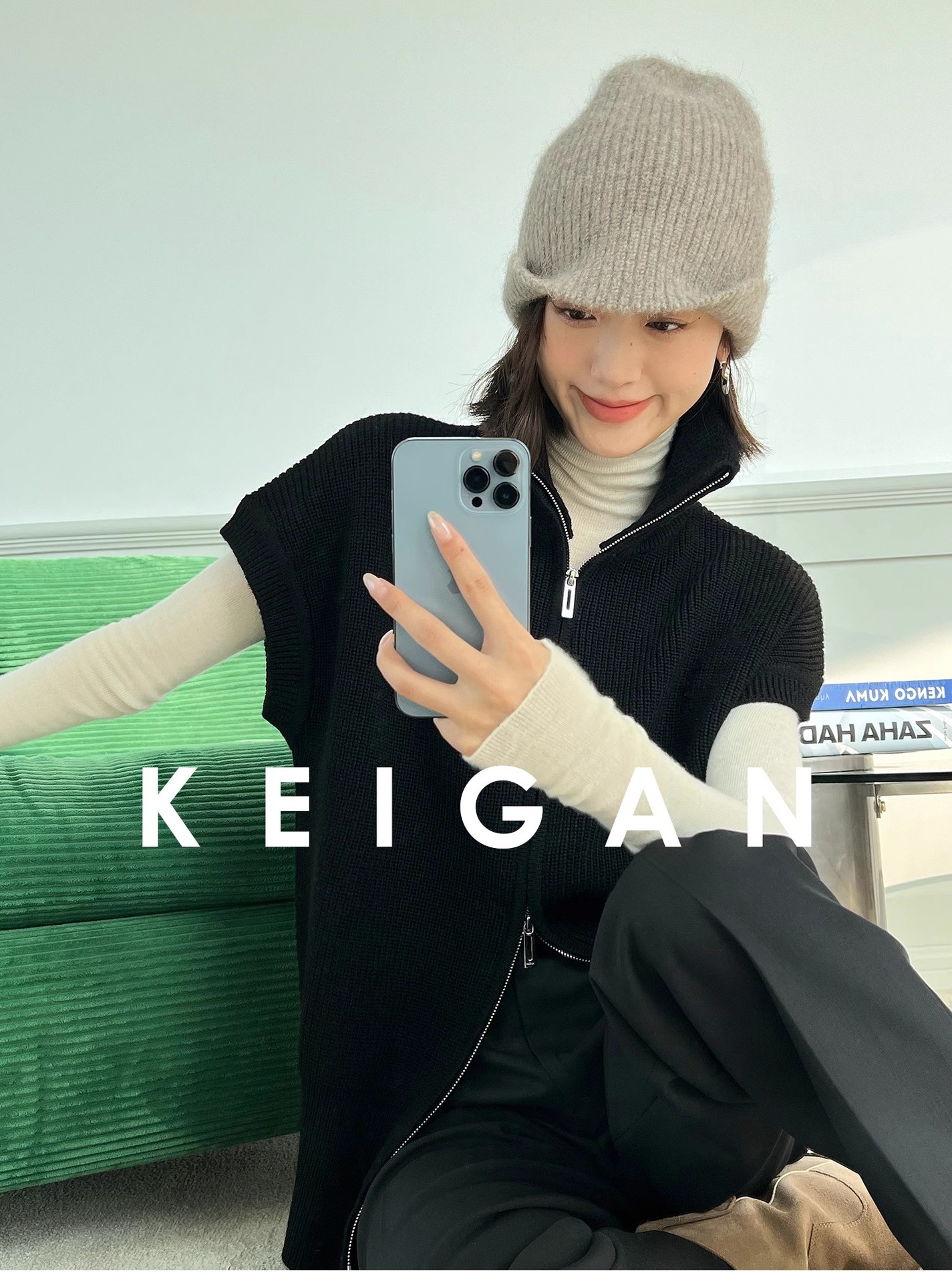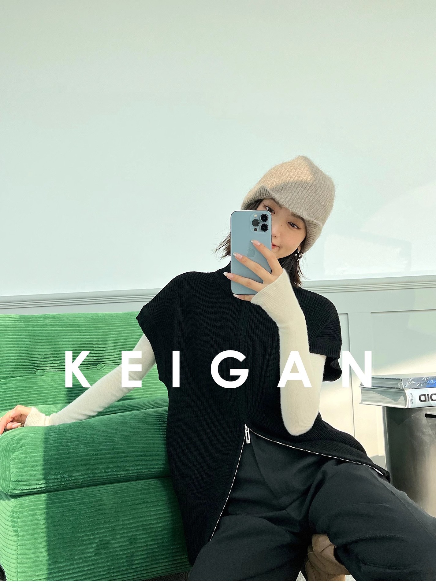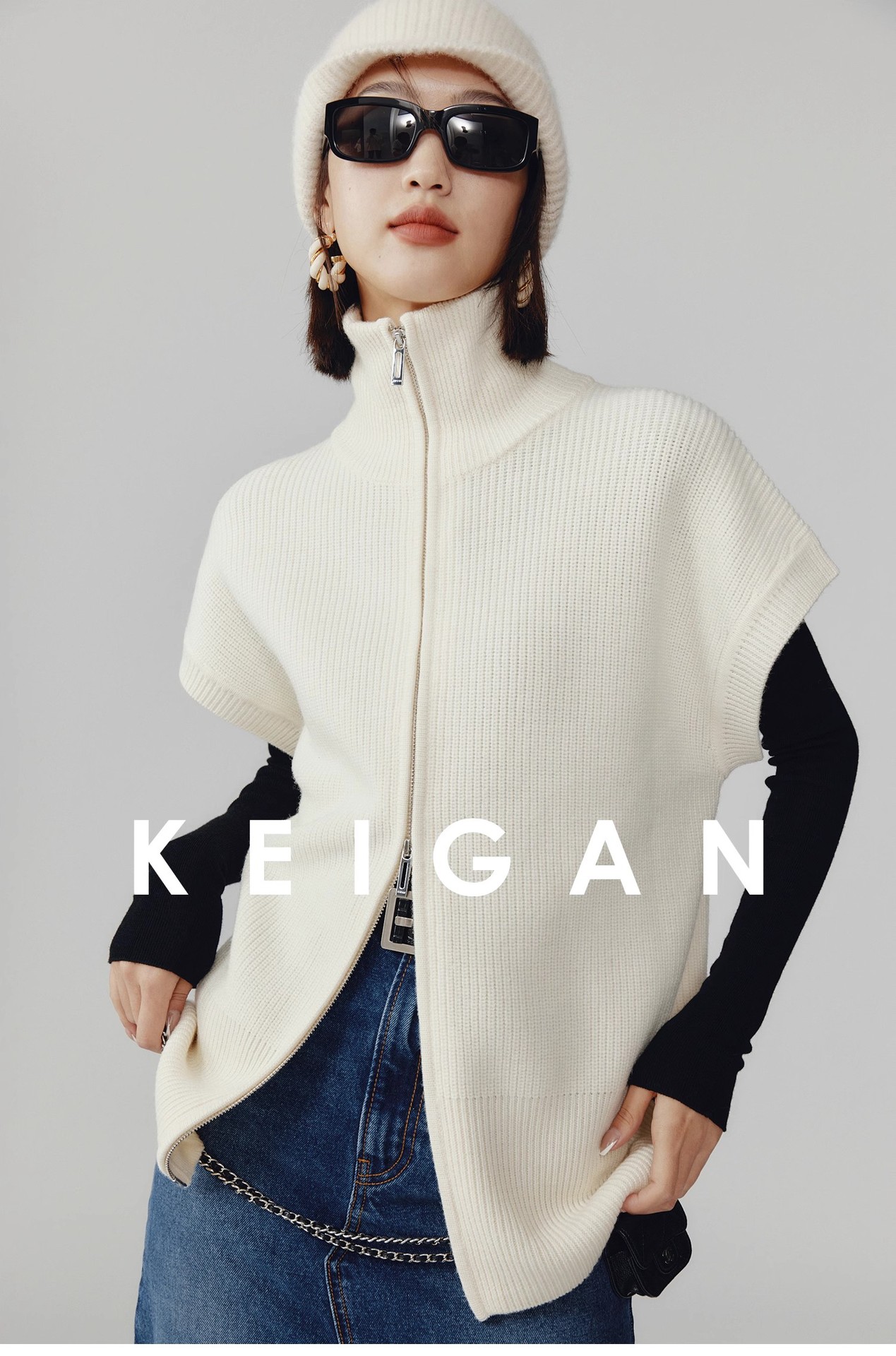 여성용 터틀넥 니트 조끼 양모 루즈 아우터, 세련된 조끼 착용 민소매 더블 지퍼 스웨터스토어 가기